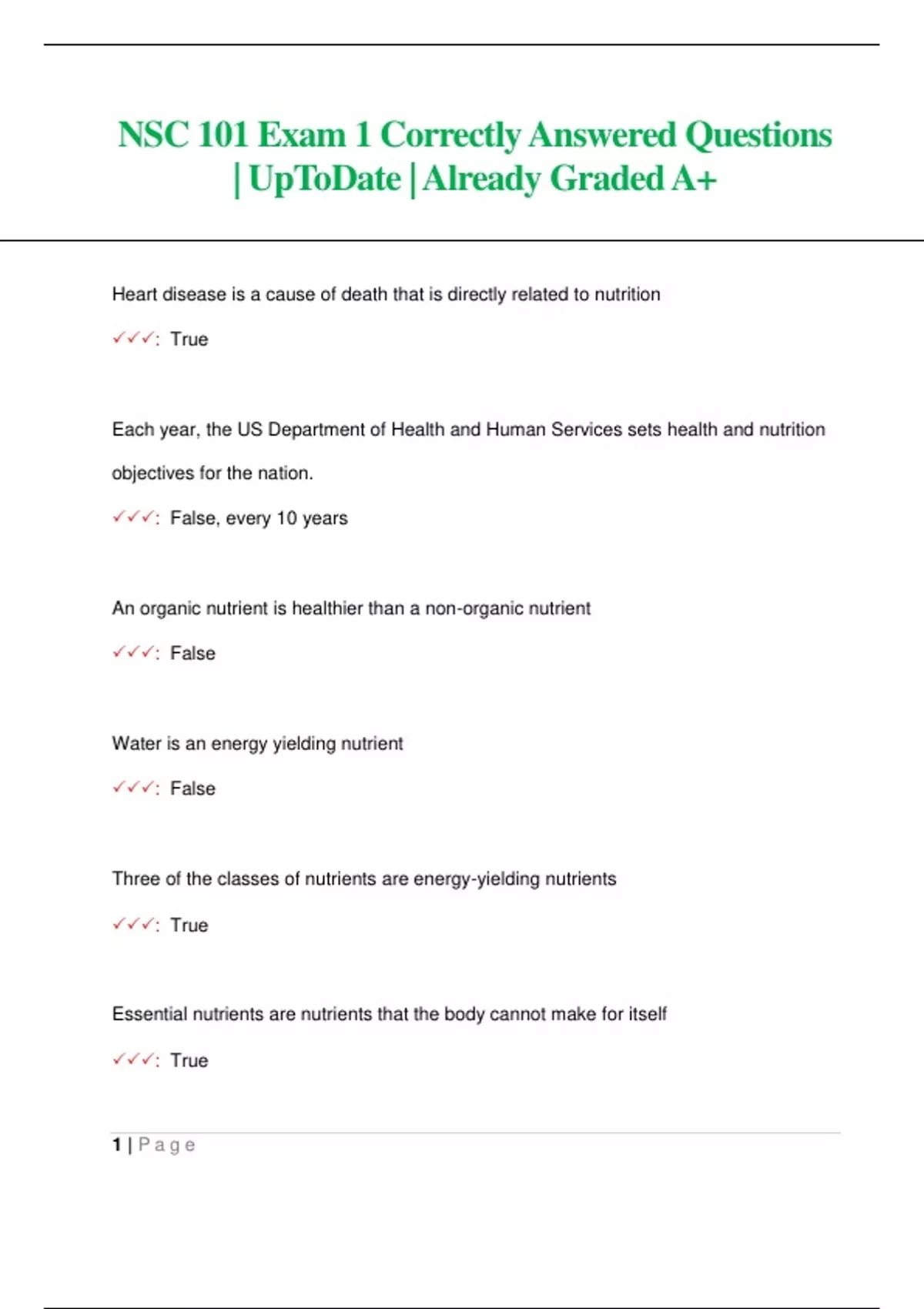 NSC 101 Exam 1 Correctly Answered Questions | UpToDate | Already Graded A+