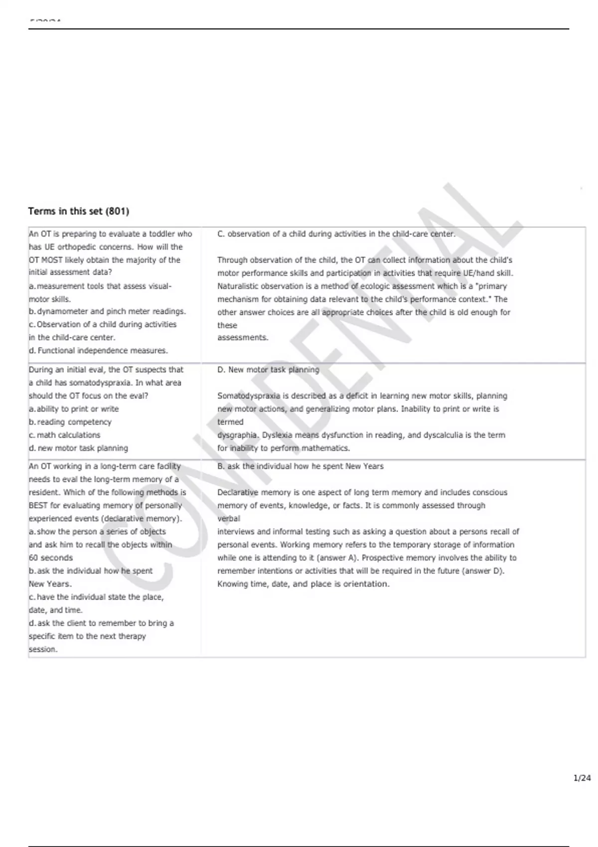 An OT is preparing to evaluate a toddler who C. observation of a child during activities in the child-care center.