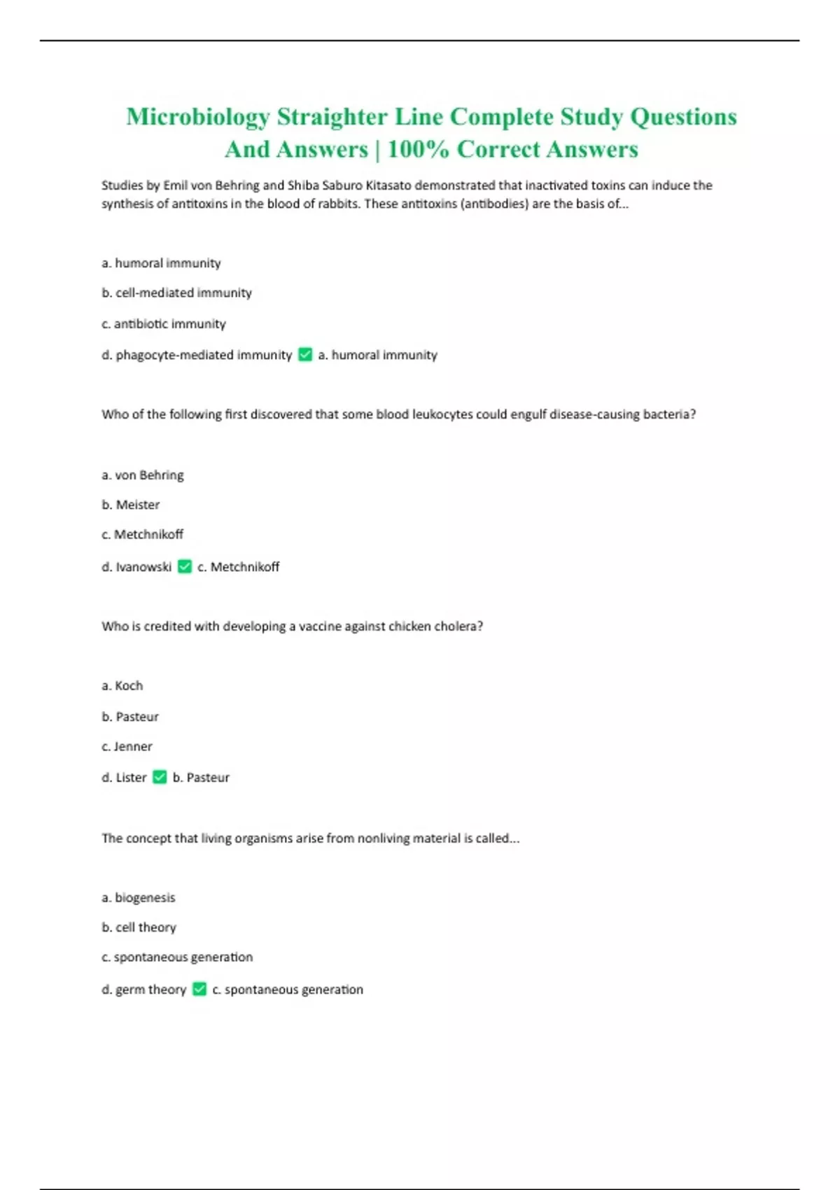Microbiology Straighter Line Complete Study Questions And Answers | 100% Correct Answers Microbiology Straighter Line Complete Study Questions And Answers | 100% Correct Answers