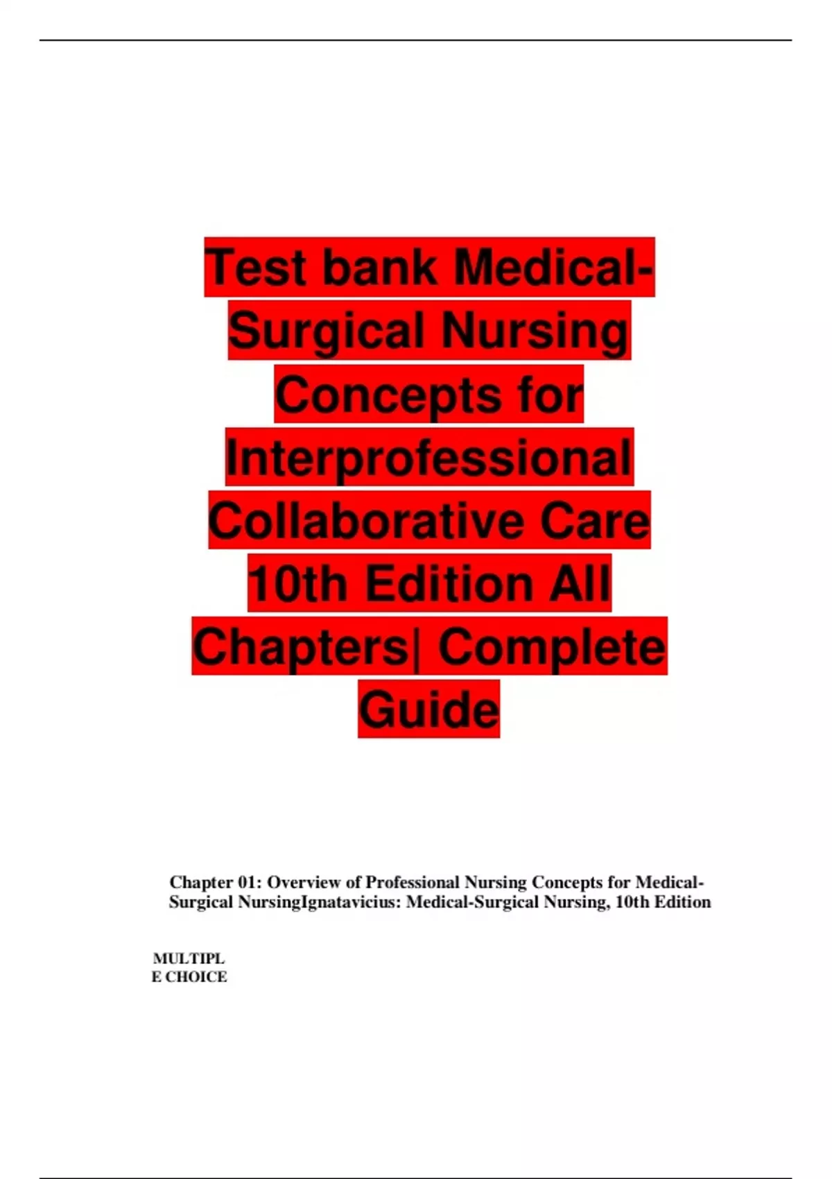 Chapter 01: Overview of Professional Nursing Concepts for Medical-