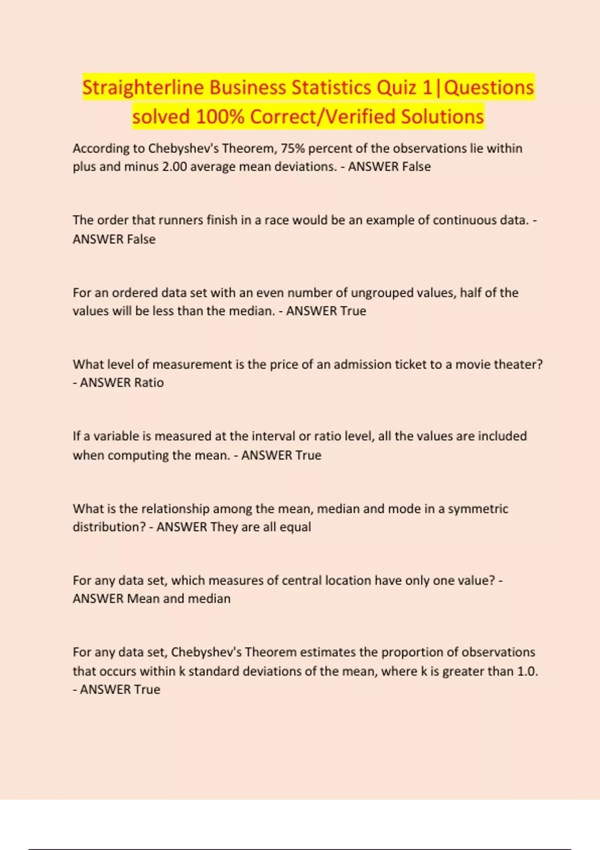 Straighterline Business Statistics Quiz 1|Questions solved 100% Correct/Verified Solutions