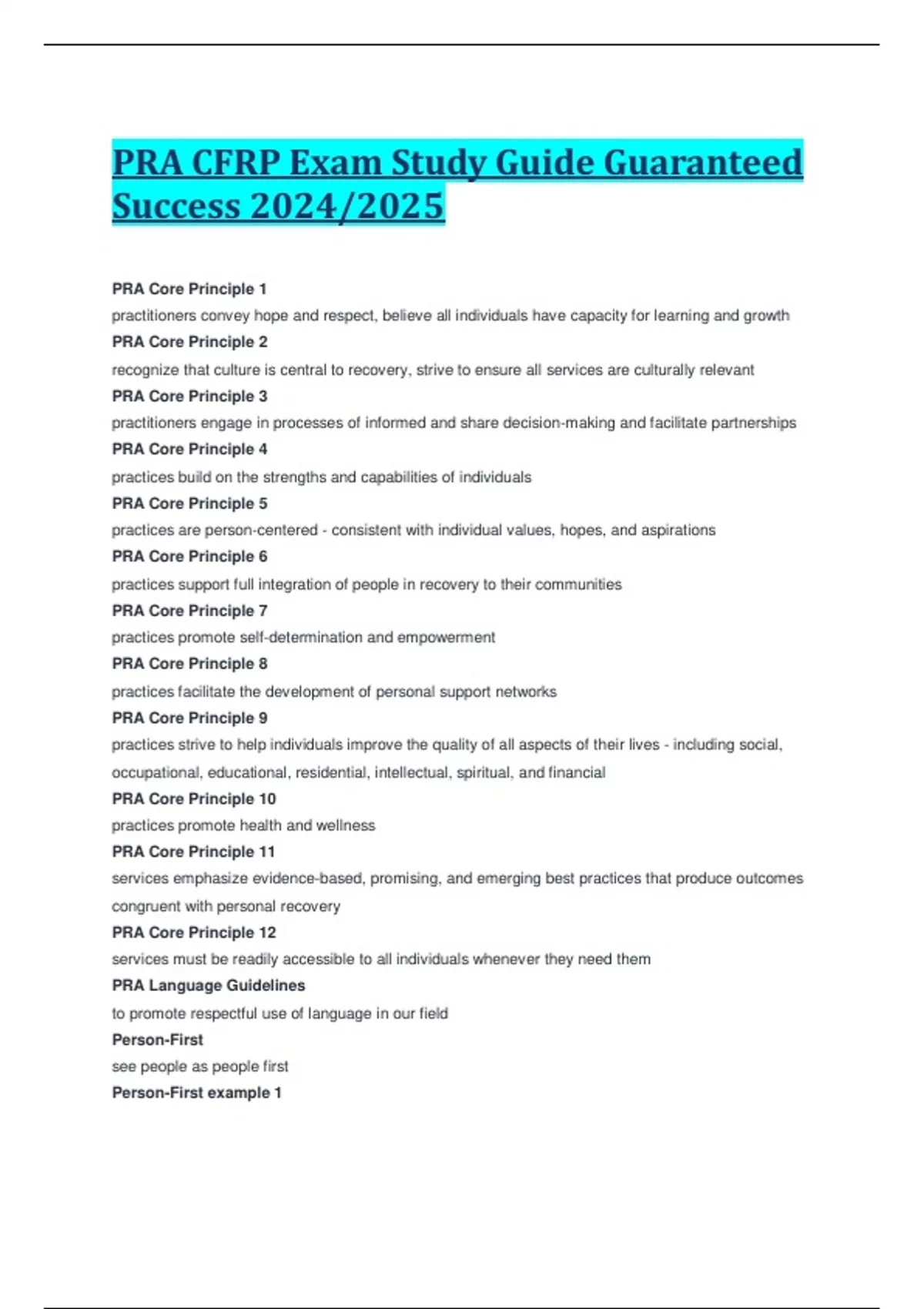 PRA CFRP Exam Study Guide Guaranteed Success 2024/2025