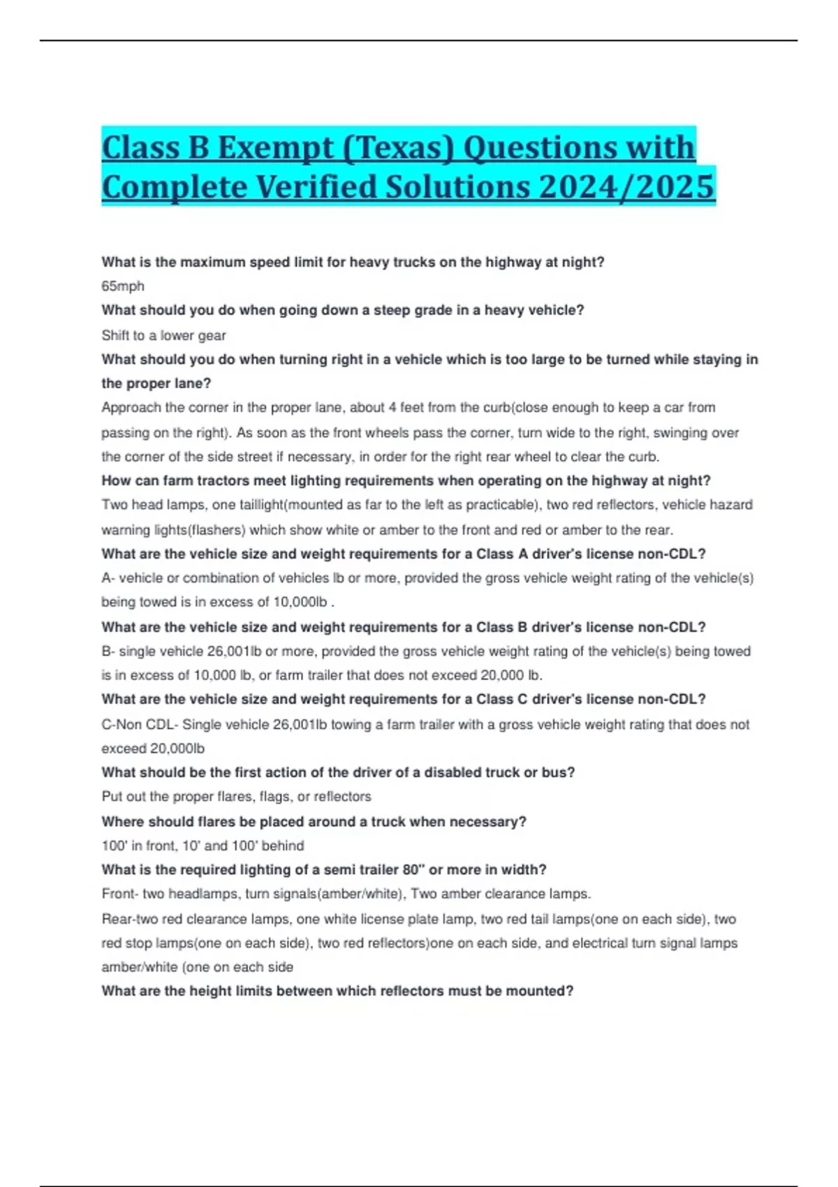 Class B Exempt (Texas) Questions with Complete Verified Solutions 2024/2025