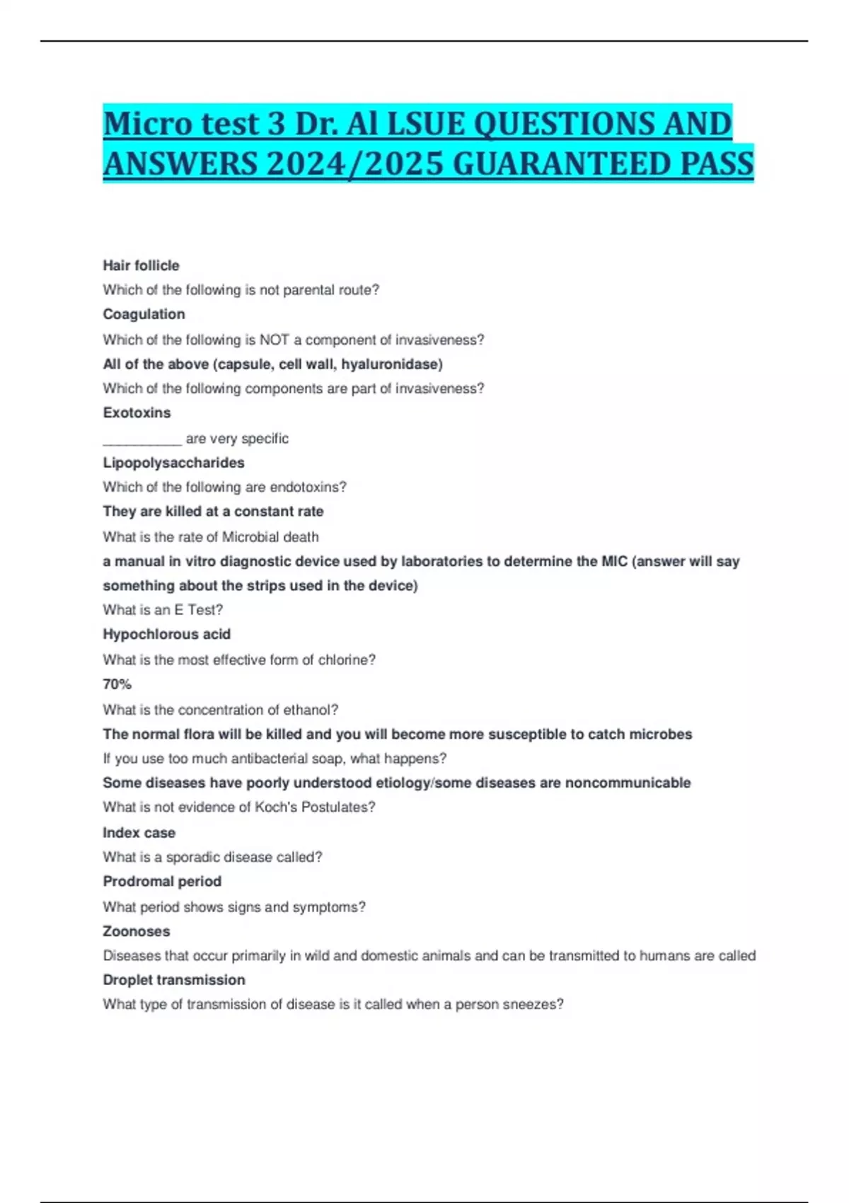Micro test 3 Dr. Al LSUE QUESTIONS AND ANSWERS 2024/2025 GUARANTEED PASS
