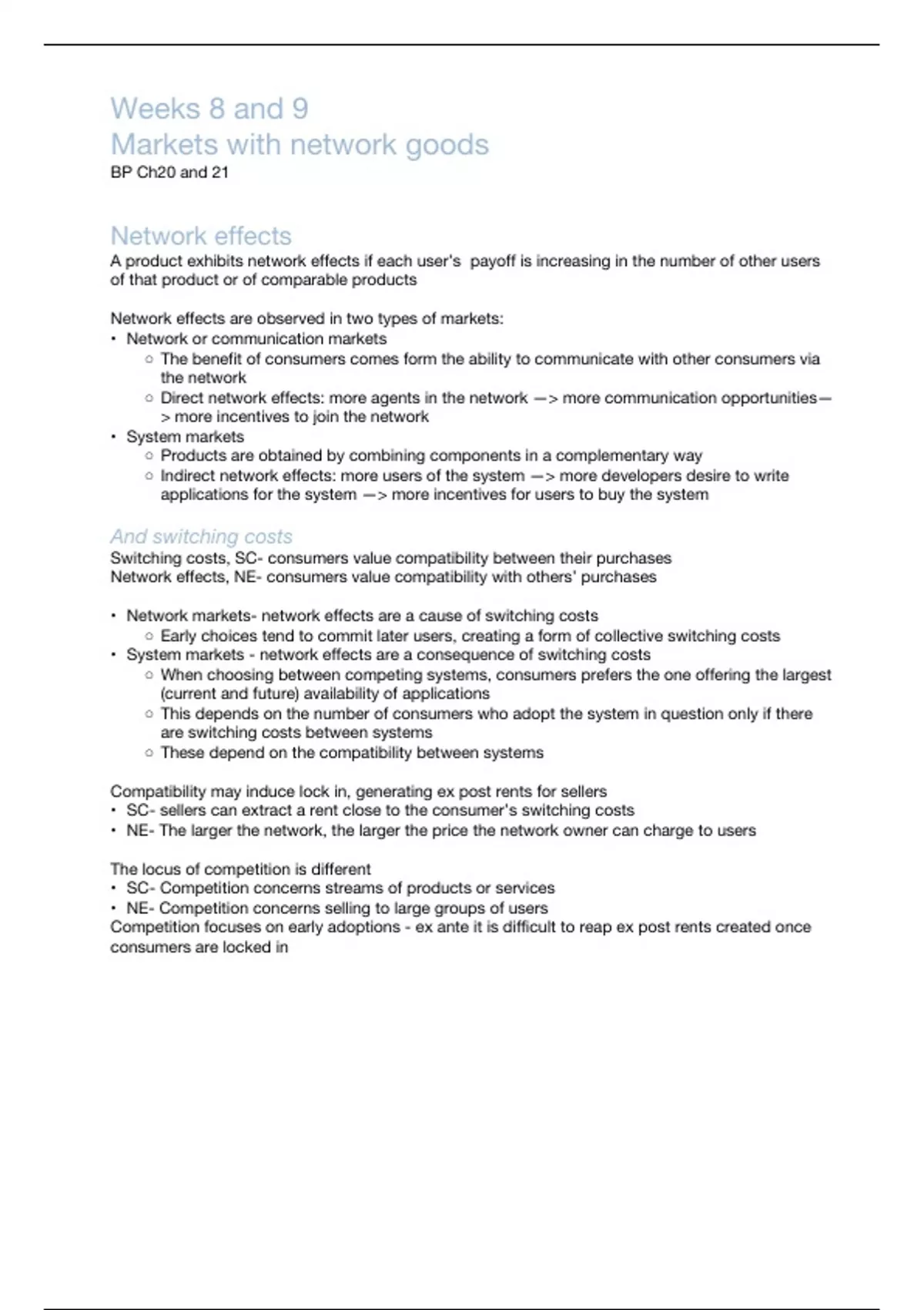 • Network markets- network effects are a cause of switching costs