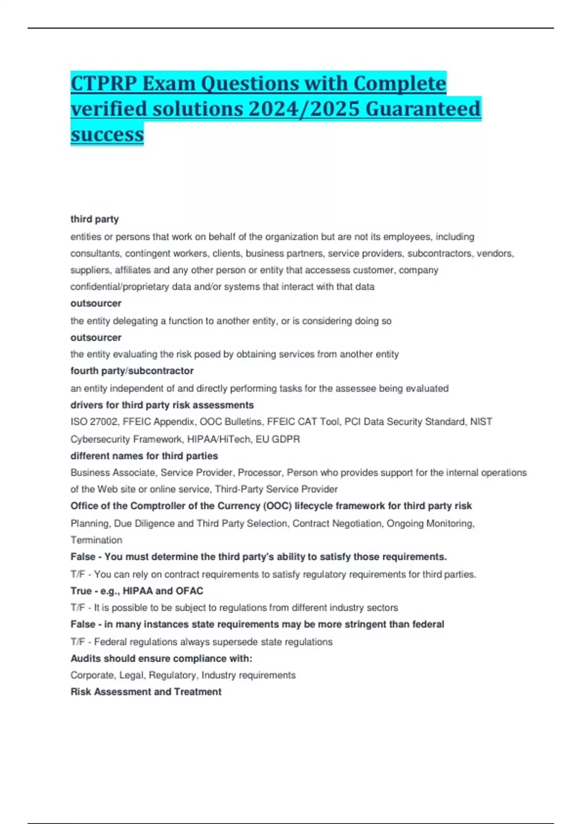 CTPRP Exam Questions with Complete verified solutions 2024/2025 Guaranteed success