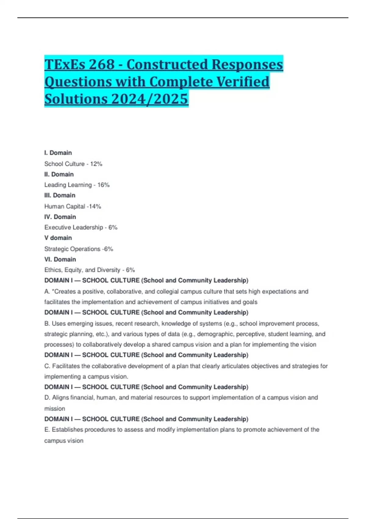 TExEs 268 - Constructed Responses Questions with Complete Verified Solutions 2024/2025