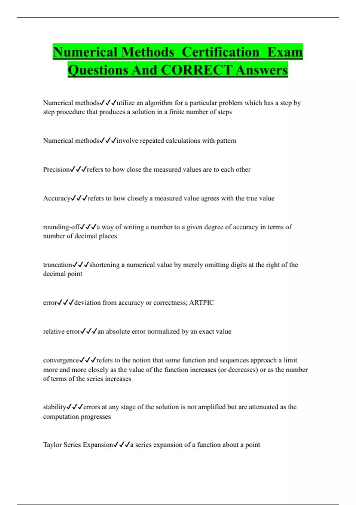 Numerical Methods Certification Exam Questions And CORRECT Answer