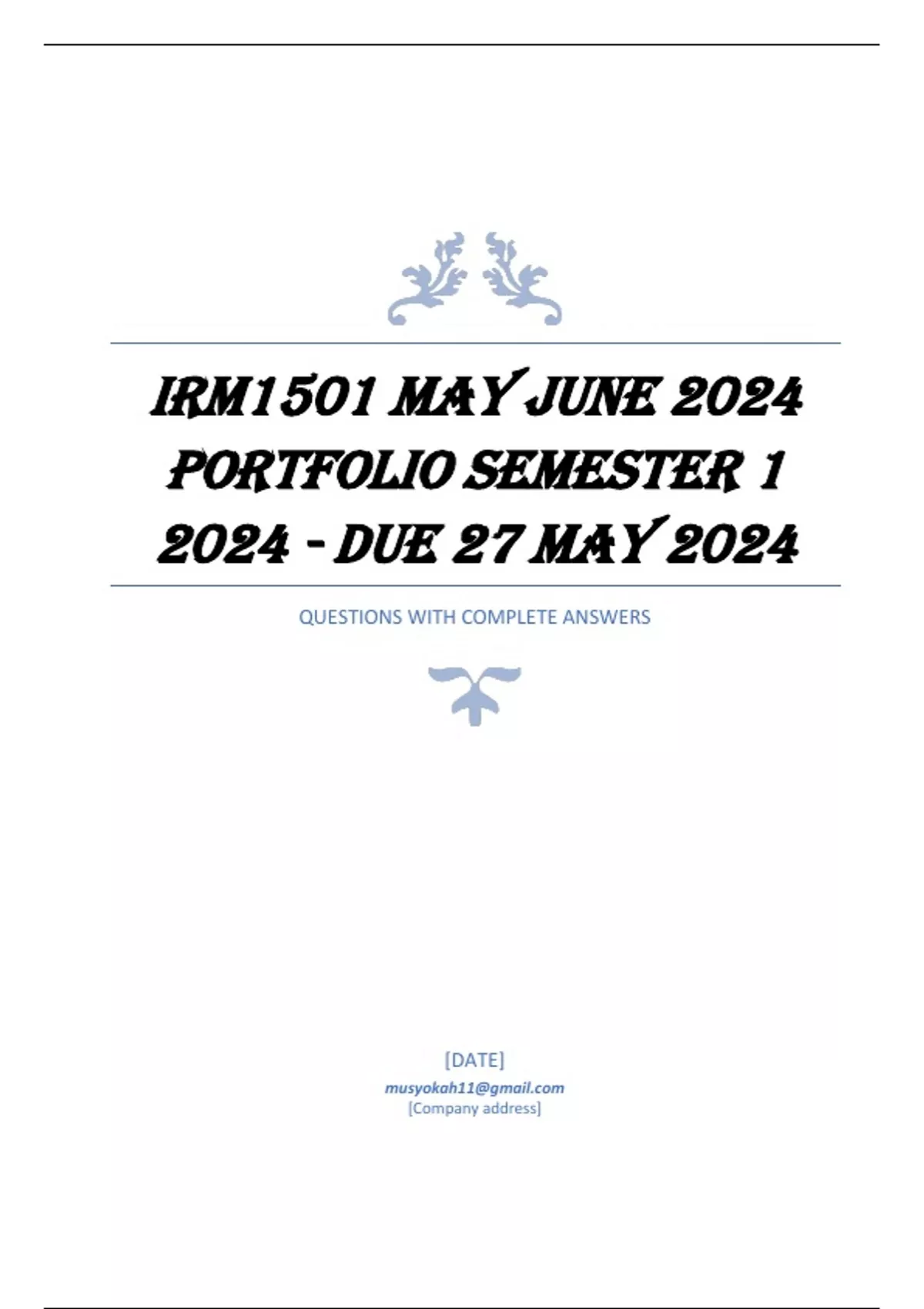 , IRM1501 MAY JUNE 2024 PORTFOLIO Semester 1 2024