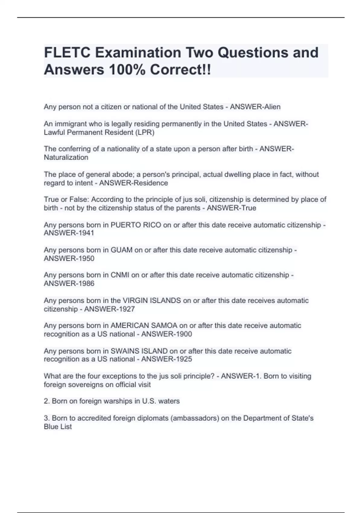 FLETC Examination Two Questions and Answers 100% Correct!!