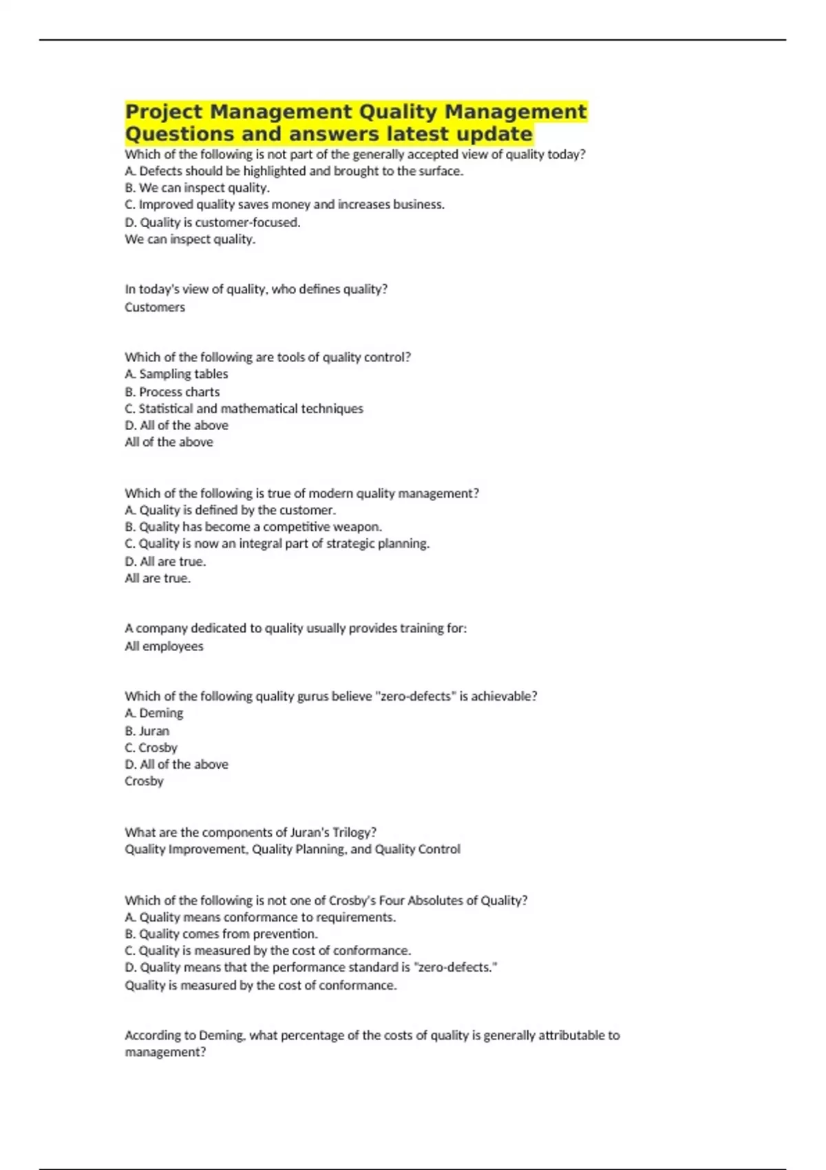 Questions and answers latest update