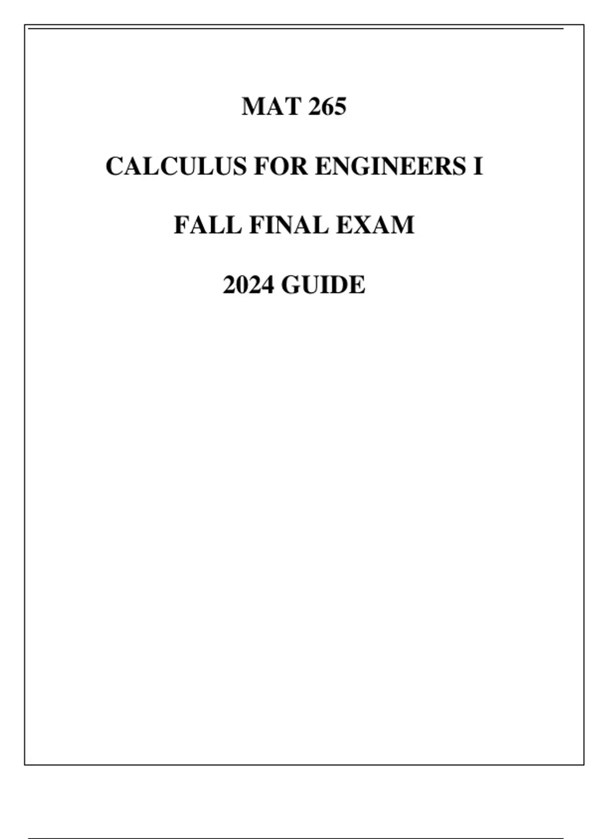 (ASU) MAT 265 Calculus For Engineers Fall Final Exam 2024 Guide(ASU) MAT 265 Calculus For Engineers Fall Final Exam 2024 Guide