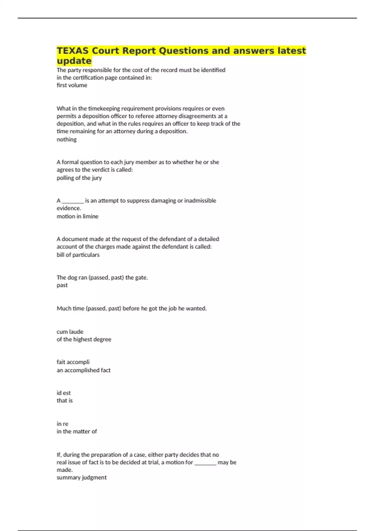 All certified questions must be listed: