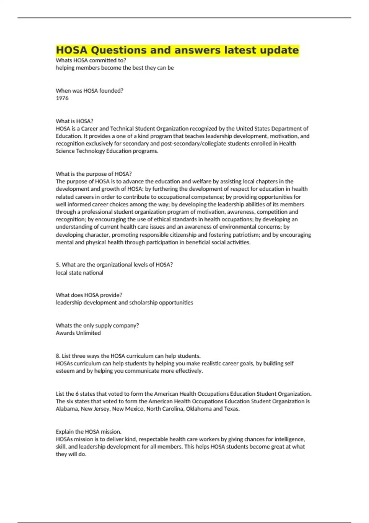 HOSA is a Career and Technical Student Organization recognized by the United States Department of