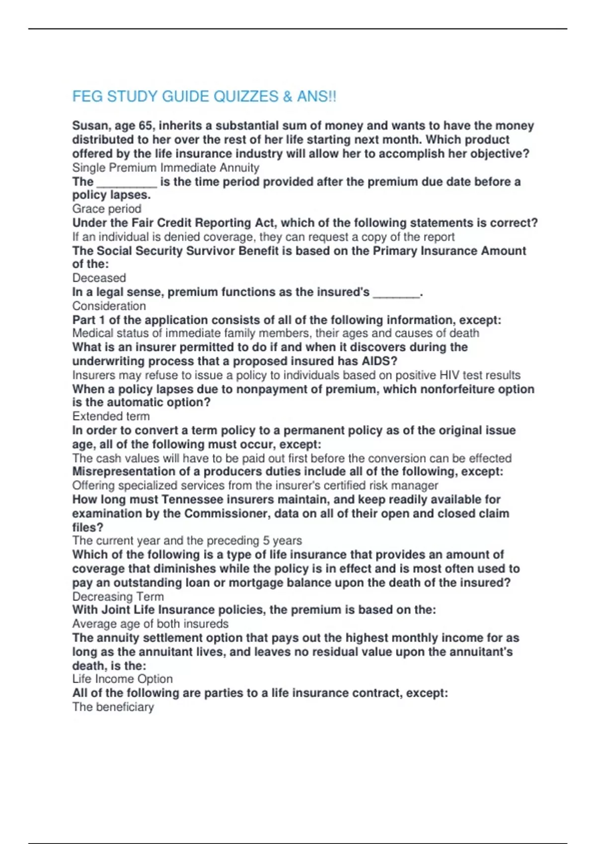 FEG STUDY GUIDE QUIZZES & ANS!!