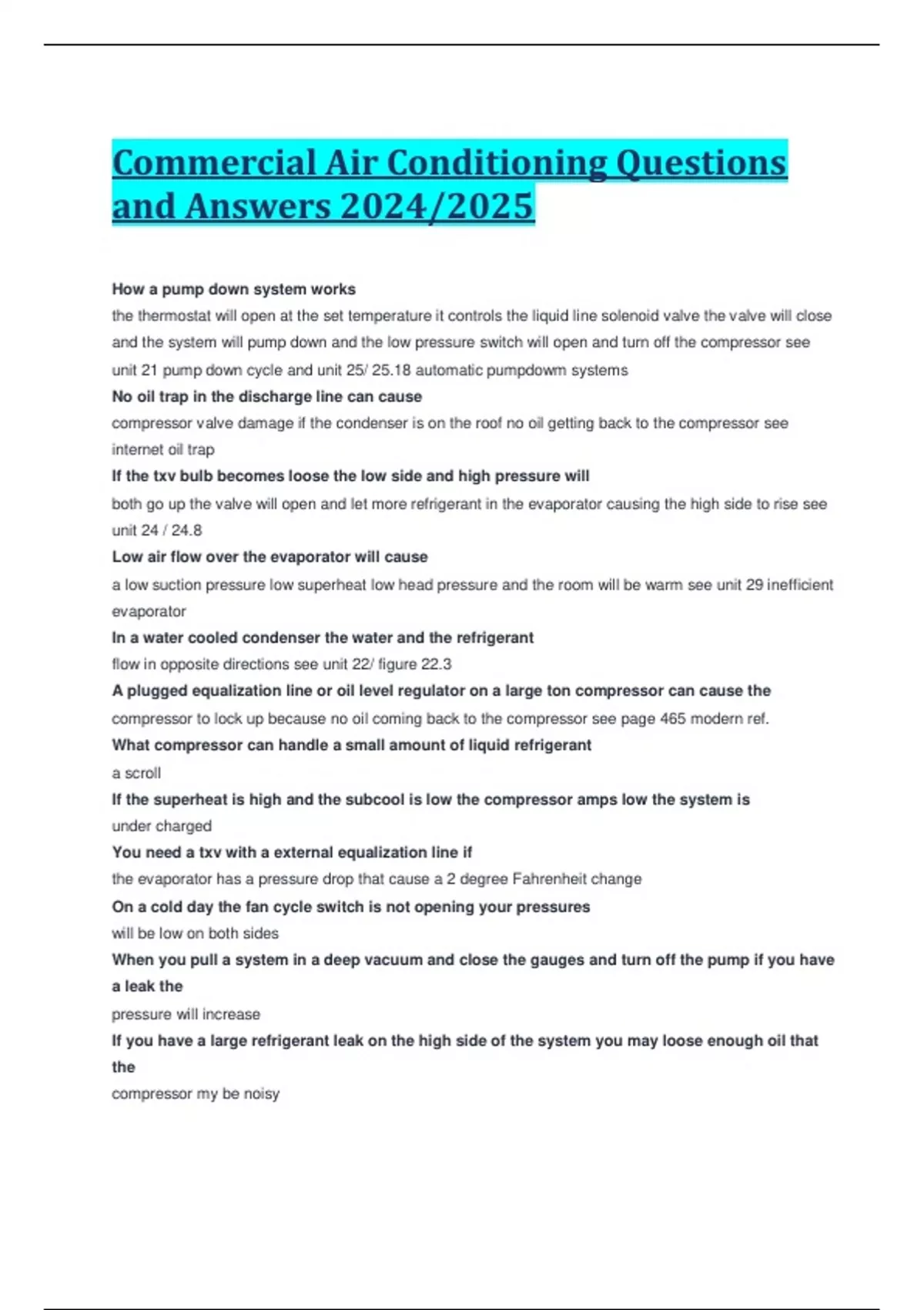 Commercial Air Conditioning Questions and Answers 2024/2025
