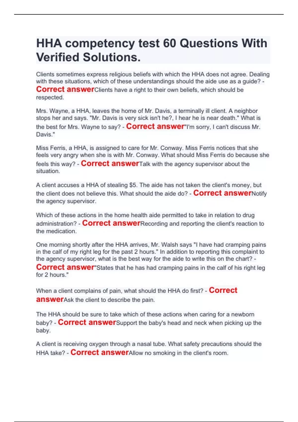 HHA competency test 60 Questions With Verified SolutionsHHA competency test 60 Questions With Verified SolutionsHHA competency test 60 Questions With Verified Solutions