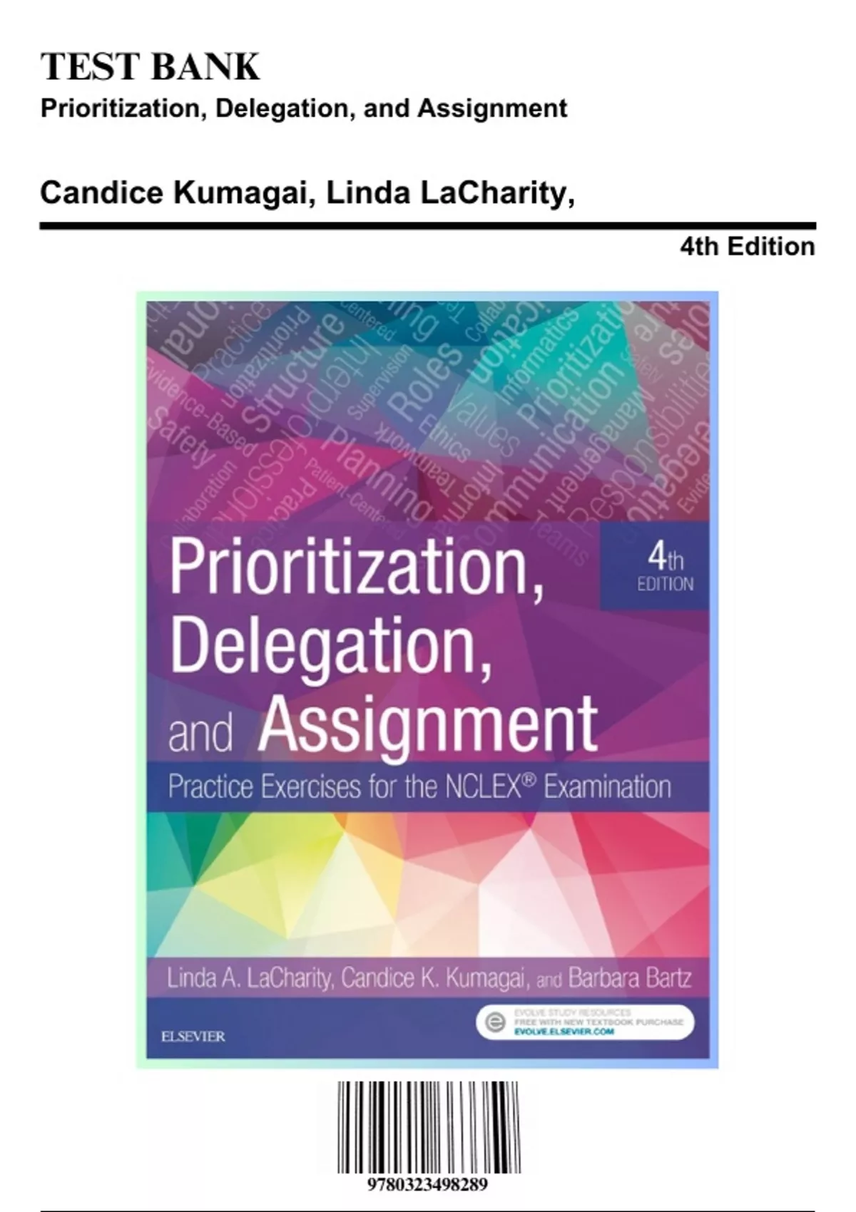 Test Bank for Prioritization, Delegation, and Assignment, 4th Edition by LaCharity, 9780323498289, Covering Chapters 1-22 | Includes Rationales