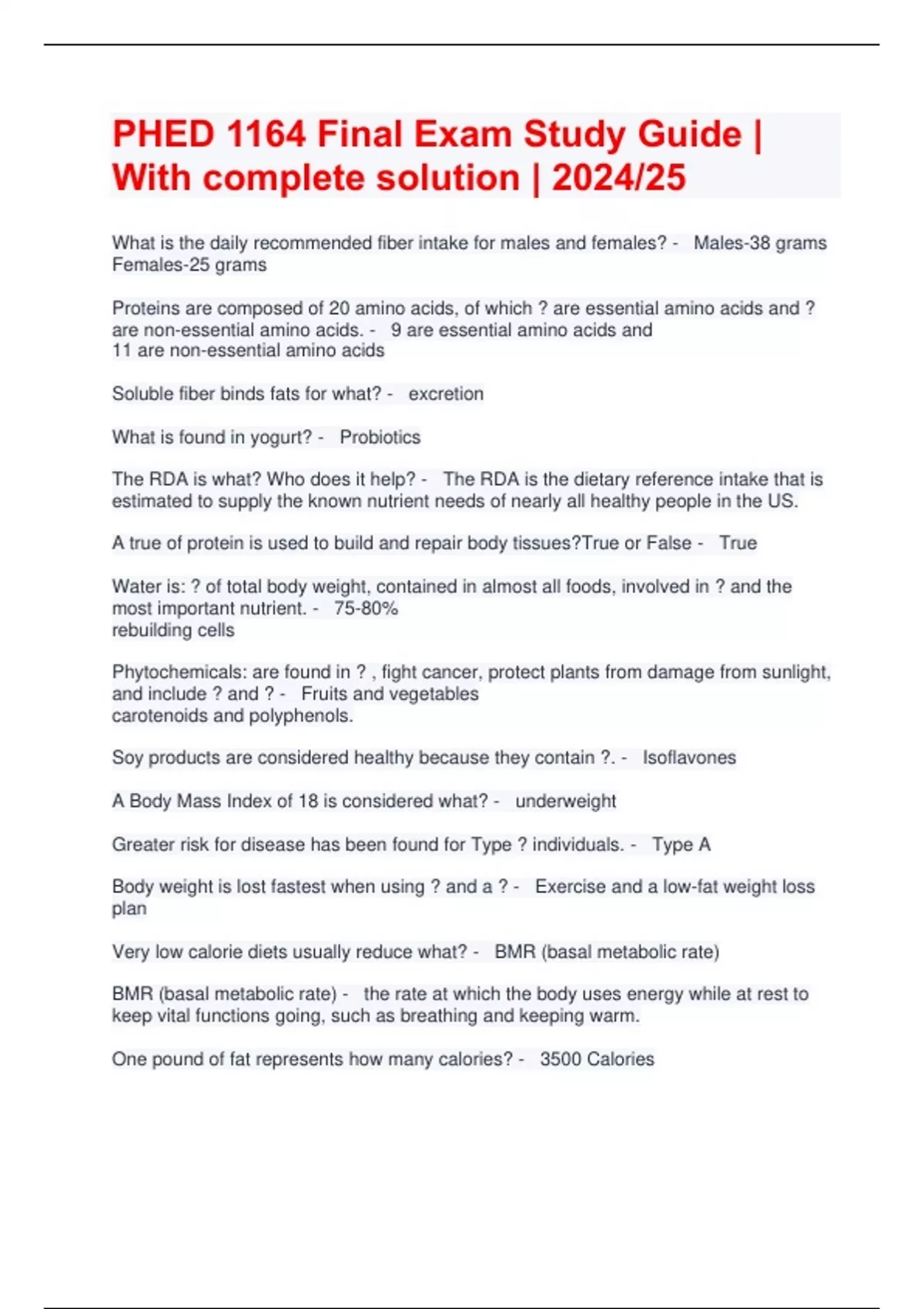 PHED 1164 Final Exam Study Guide | With complete solution | 2024/25