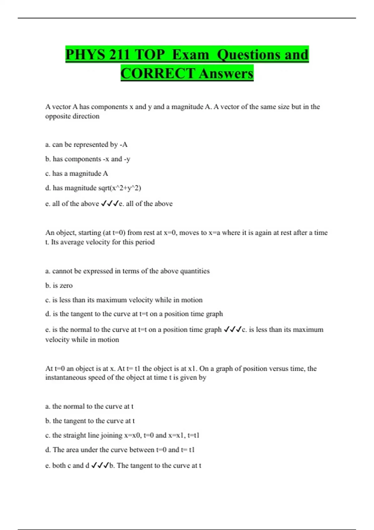 PHYS 211 TOP Exam Questions and CORRECT Answers