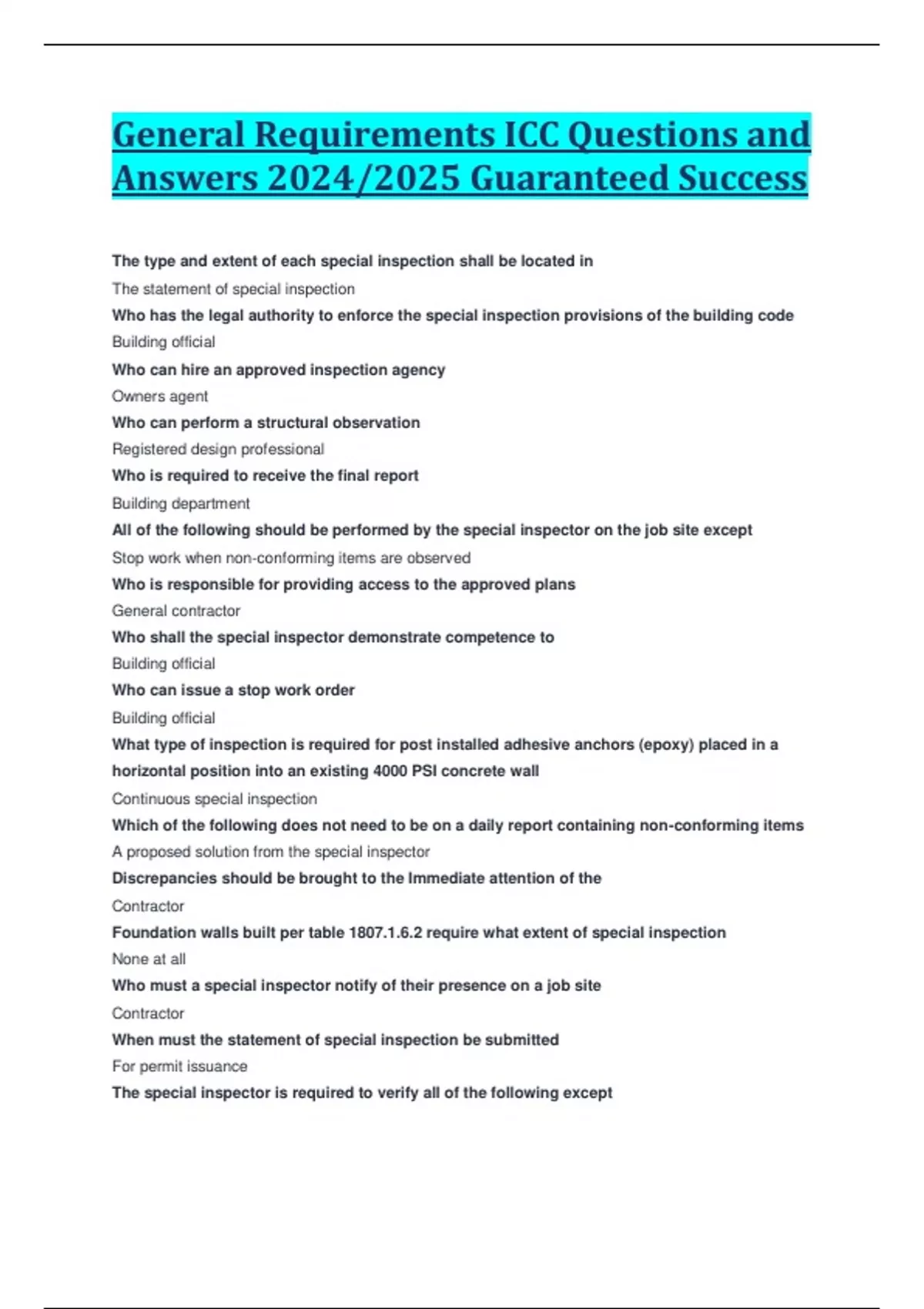 General Requirements ICC Questions and Answers 2024/2025 Guaranteed Success