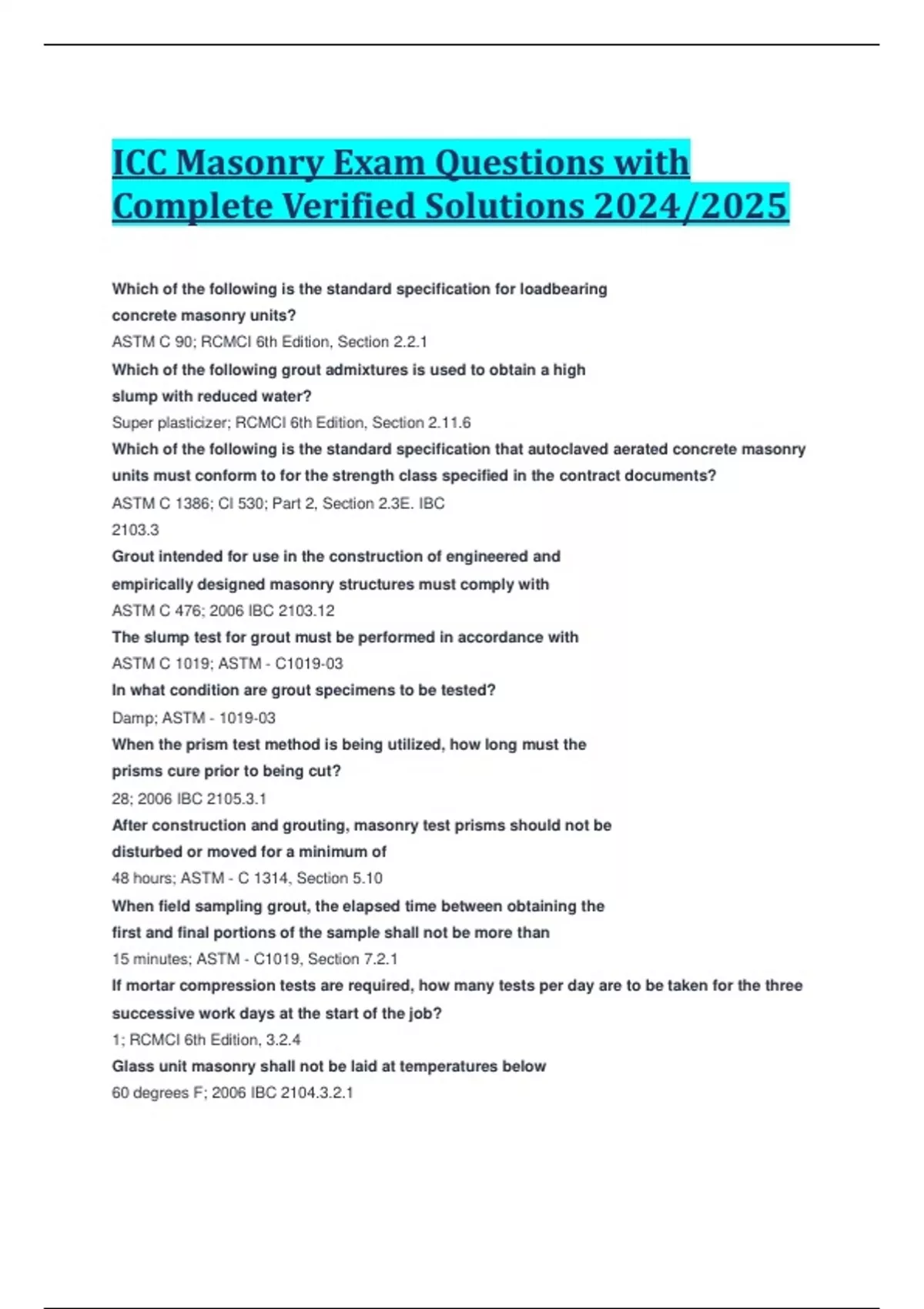 ICC Masonry Exam Questions with Complete Verified Solutions 2024/2025