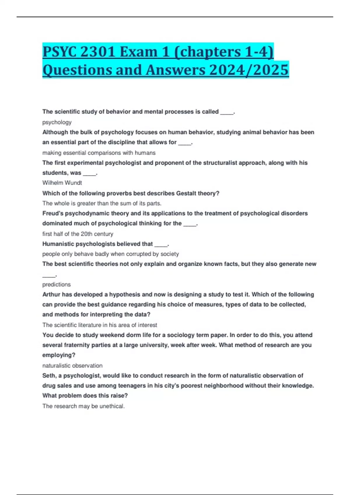 PSYC 2301 Exam 1 (chapters 1-4) Questions and Answers 2024/2025