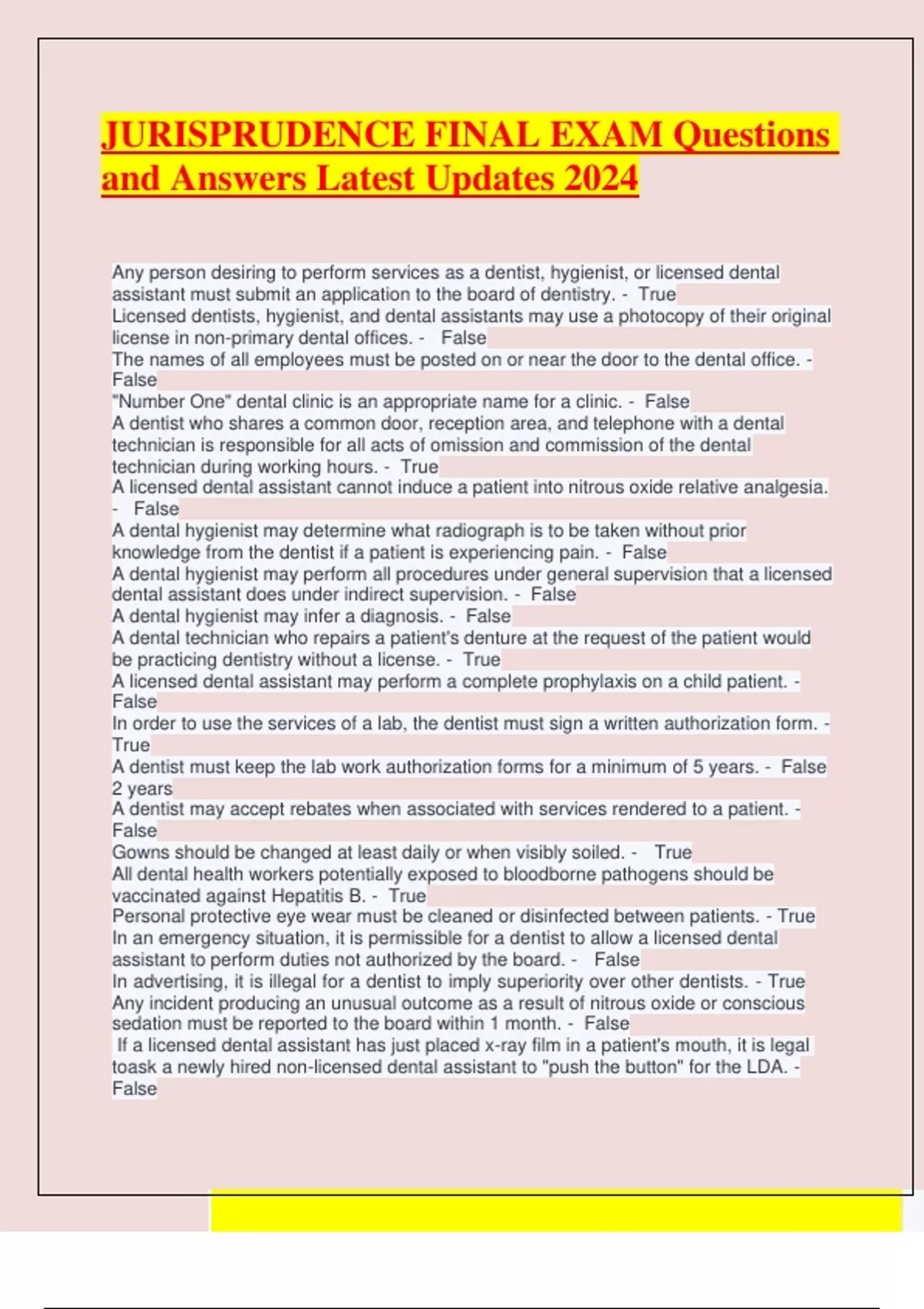 JURISPRUDENCE FINAL EXAM Questions and Answers Latest Updates 2024