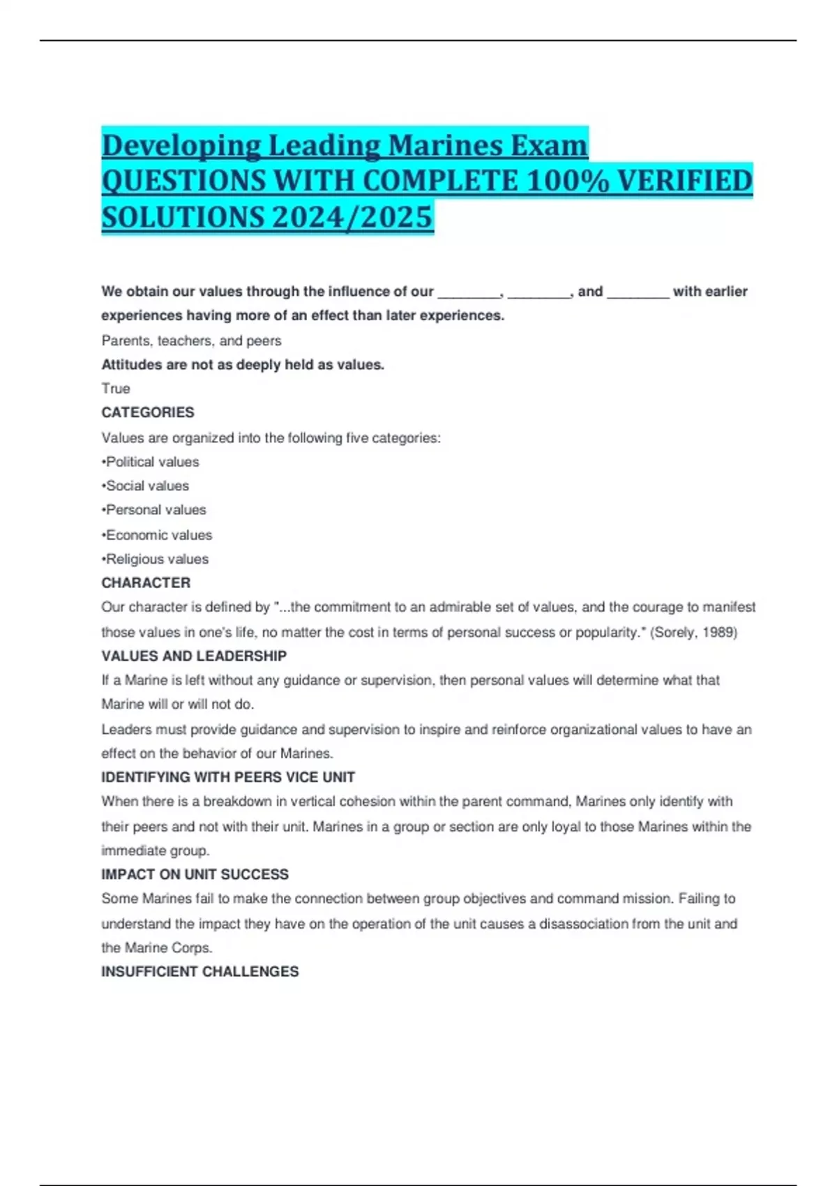 Developing Leading Marines Exam QUESTIONS WITH COMPLETE 100% VERIFIED SOLUTIONS 2024/2025