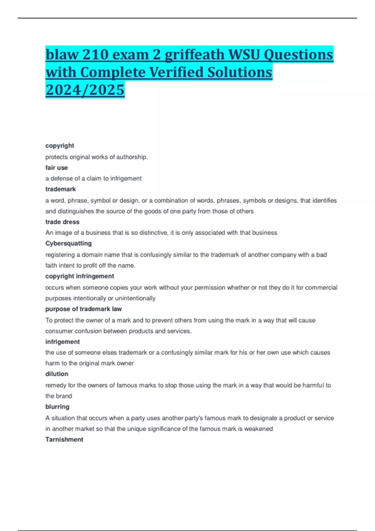 blaw 210 exam 2 griffeath WSU Questions with Complete Verified Solutions 2024/2025