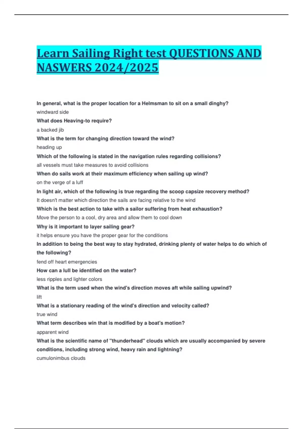 Learn Sailing Right test QUESTIONS AND NASWERS 2024/2025