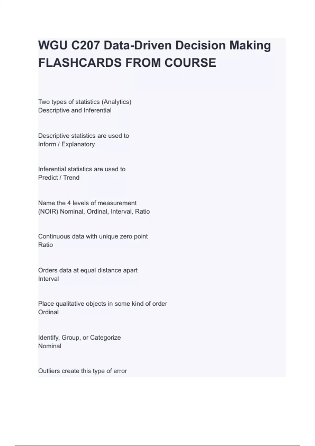 WGU C207 Data-Driven Decision Making FLASHCARDS FROM COURSE