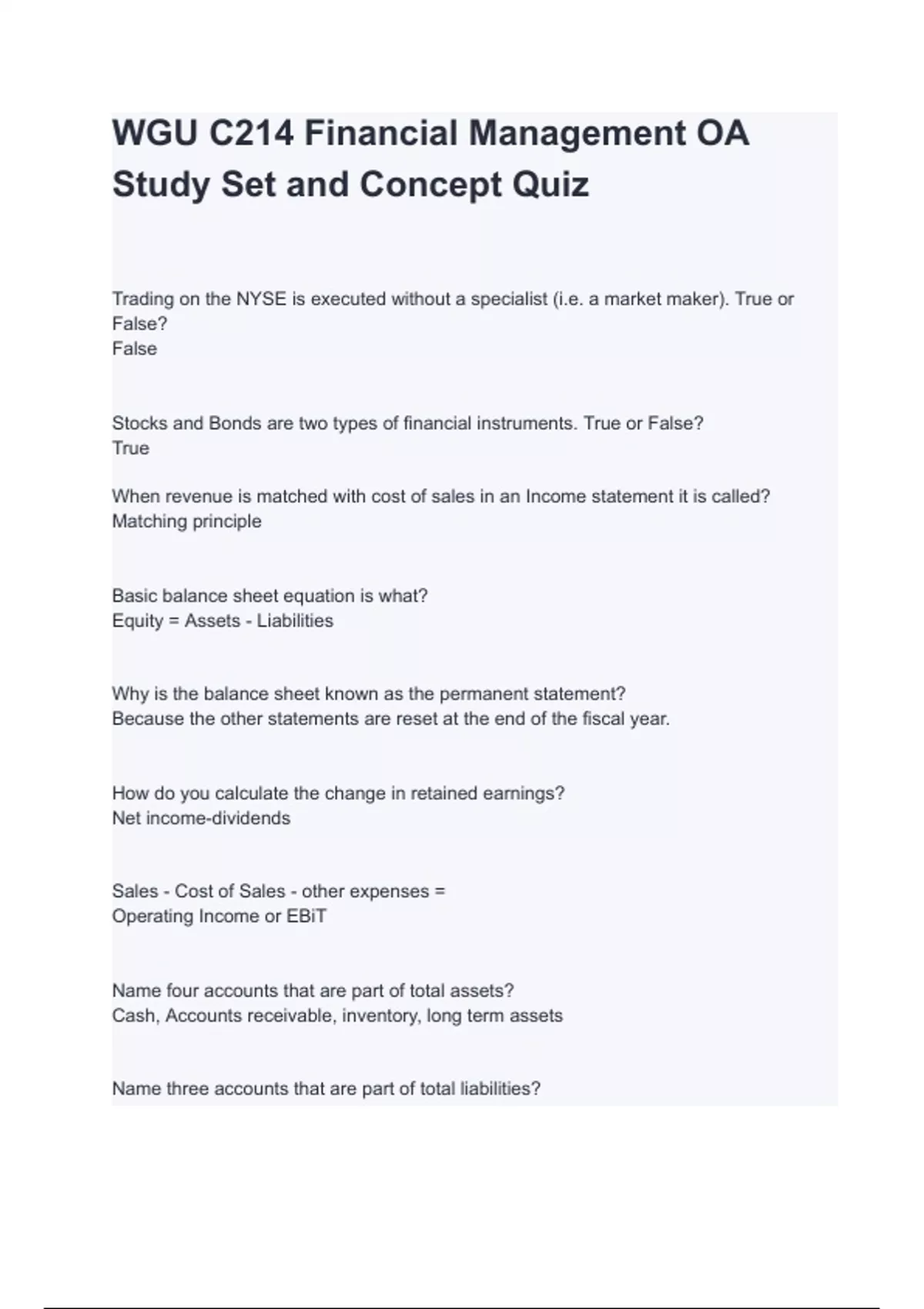 WGU C214 Financial Management OA Study Set and Concept Quiz.