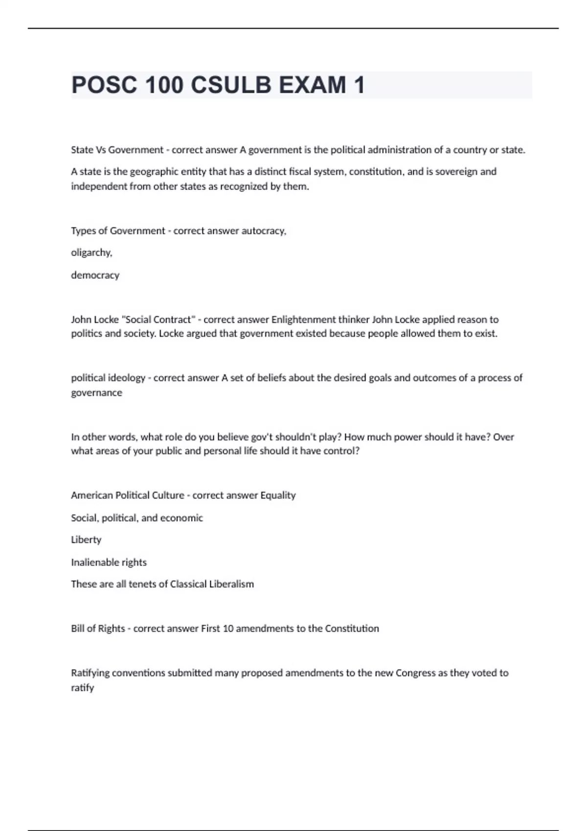 POSC 100 CSULB EXAM 1 questions and answers already solved 2024
