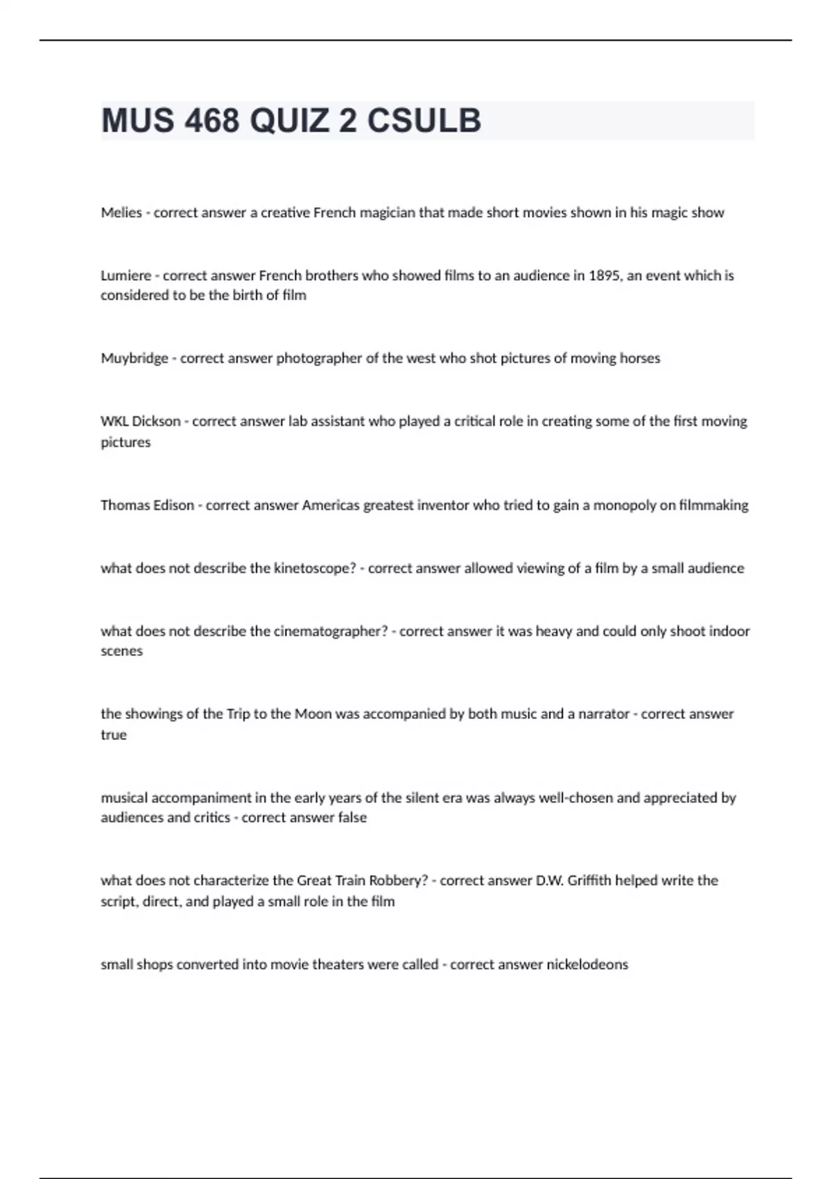 MUS 468 QUIZ 2 CSULB questions with complete solutions 2024
