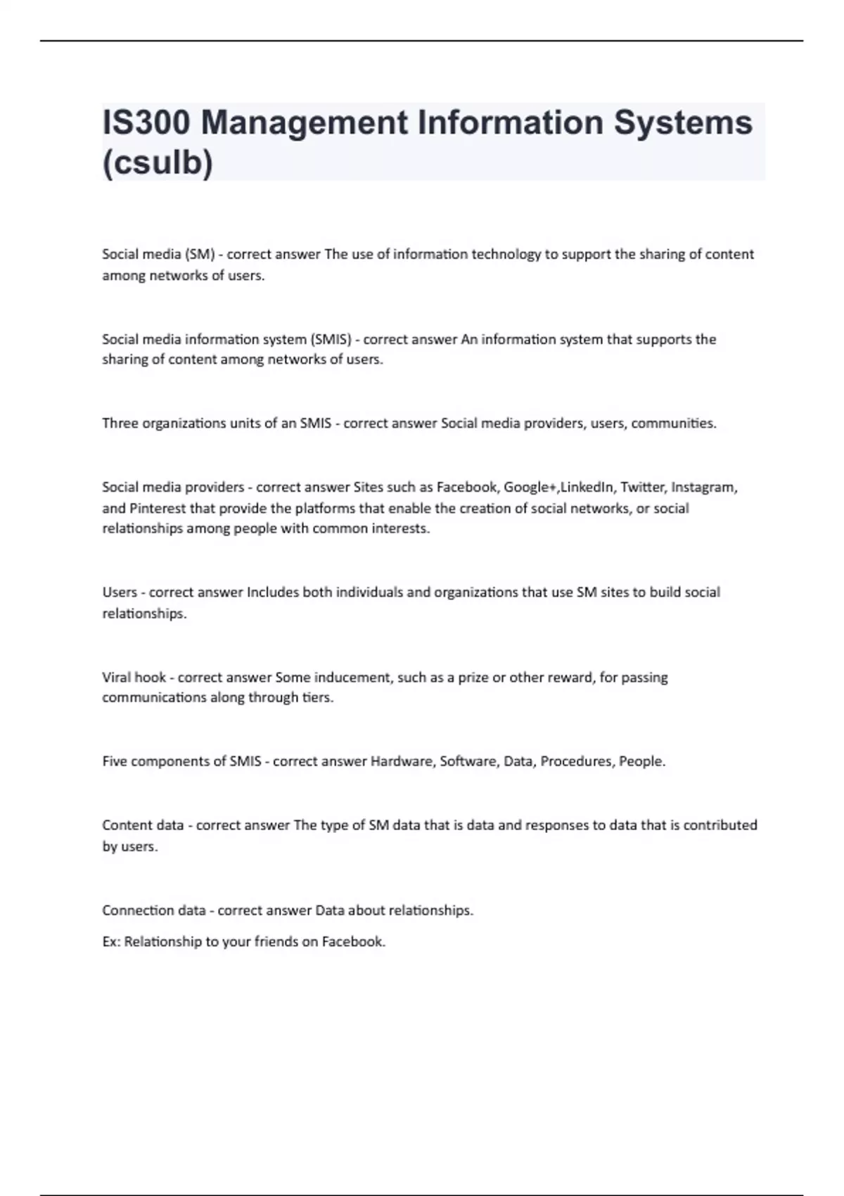 IS300 Management Information Systems (csulb questions and answers already solved 2024