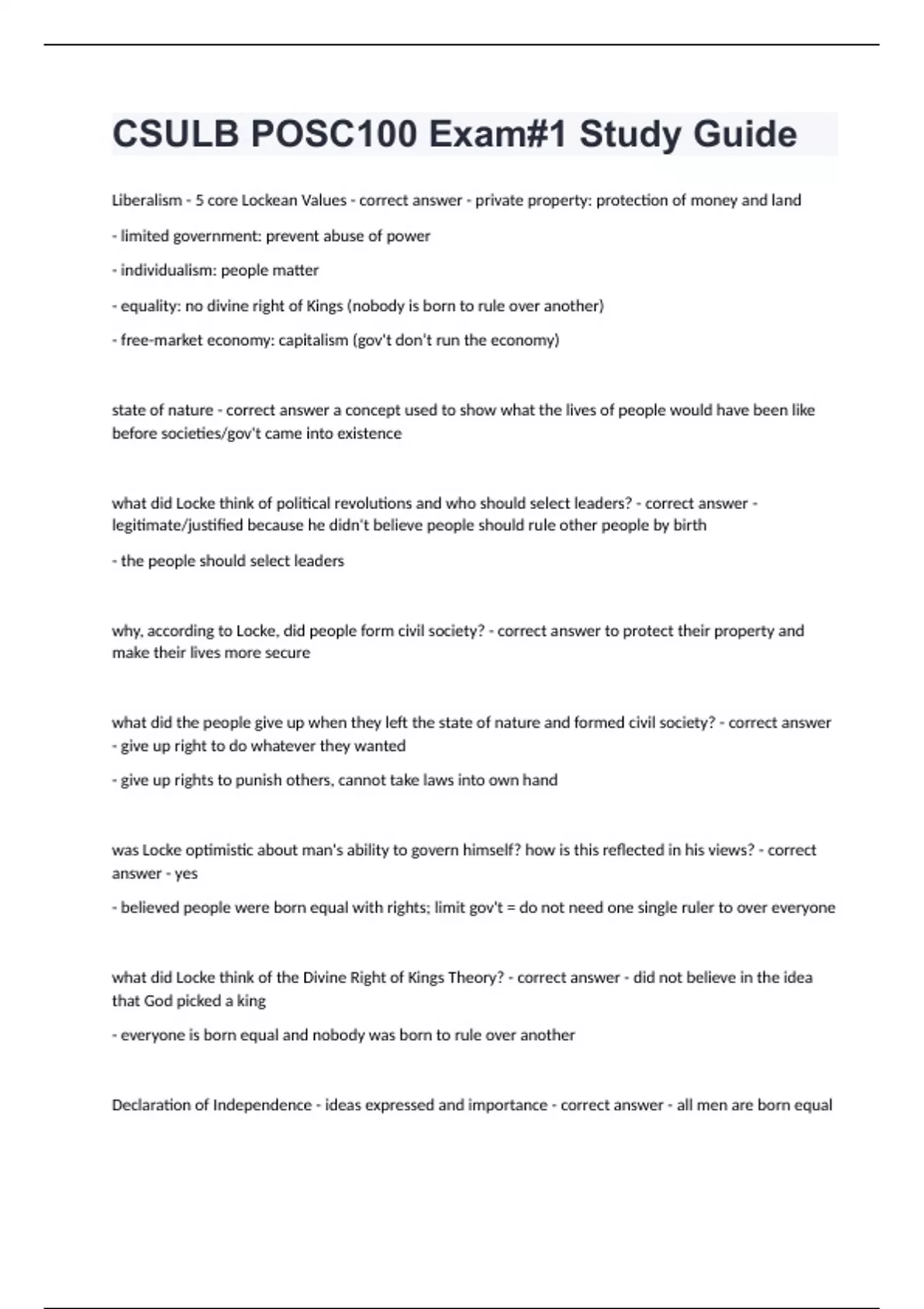 CSULB POSC100 Exam#1 Study Guide questions with complete solutions 2024