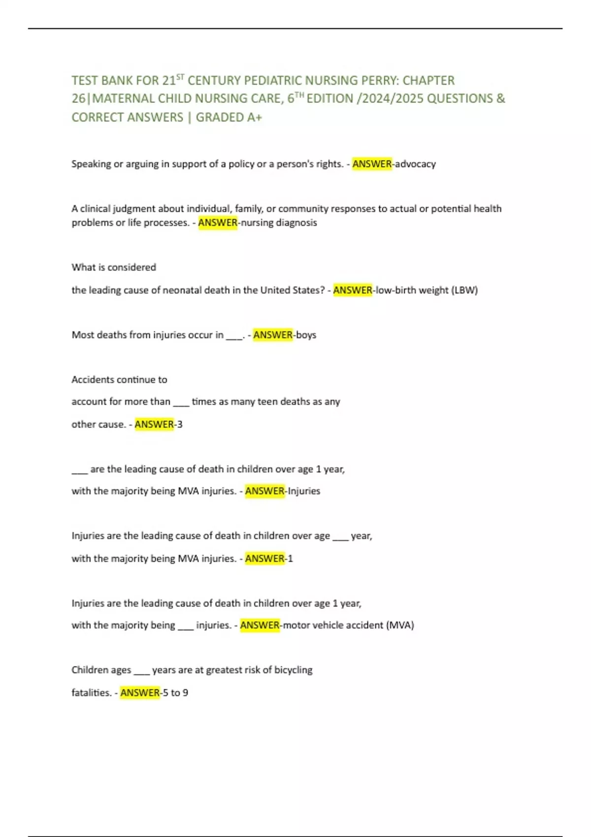 TEST BANK FOR 21ST CENTURY PEDIATRIC NURSING PERRY