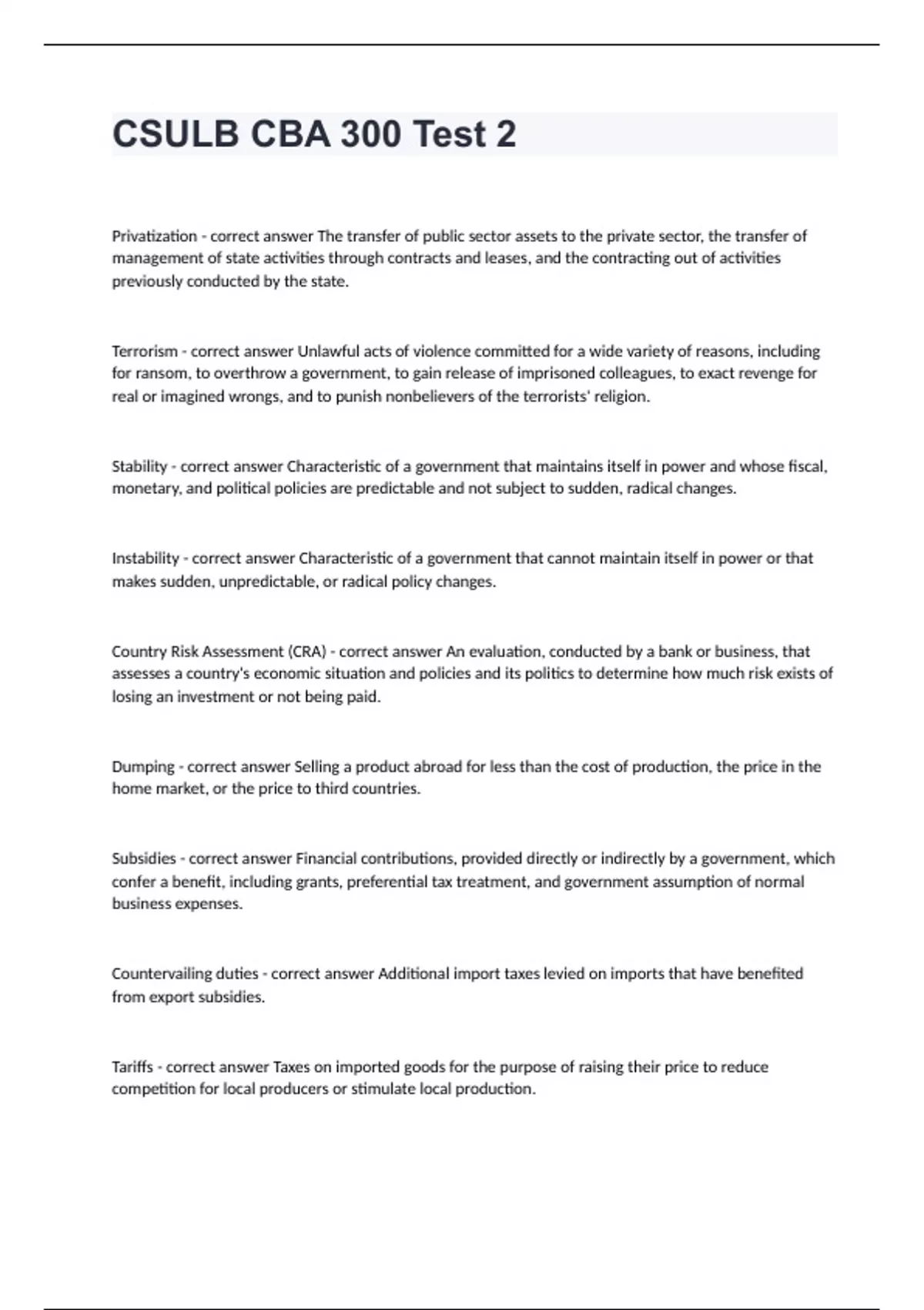 CSULB CBA 300 Test 2 questions with completed solutions 2024