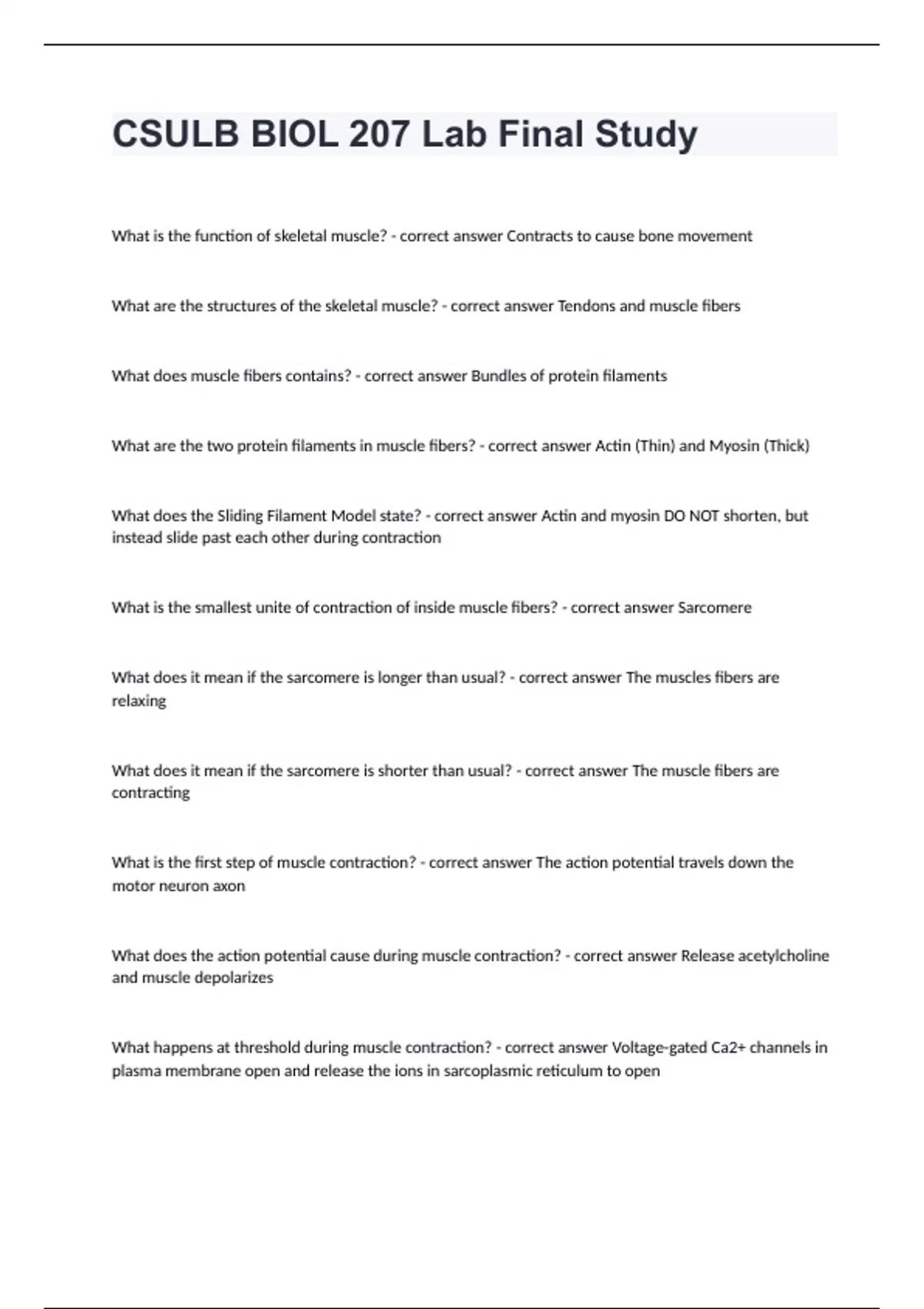 CSULB BIOL 207 Lab Final Study questions and answers alread solved 2024
