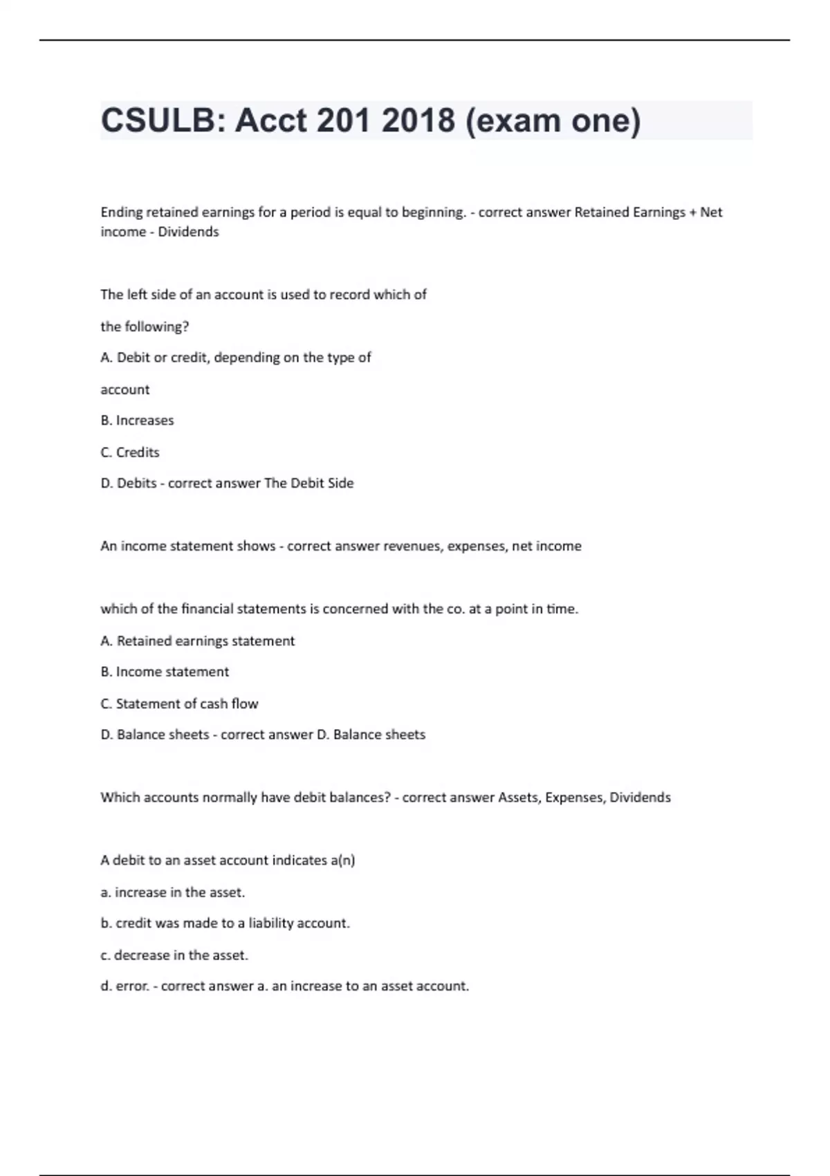CSULB Acct 201 exam one) questions and answers rated A+ 2024