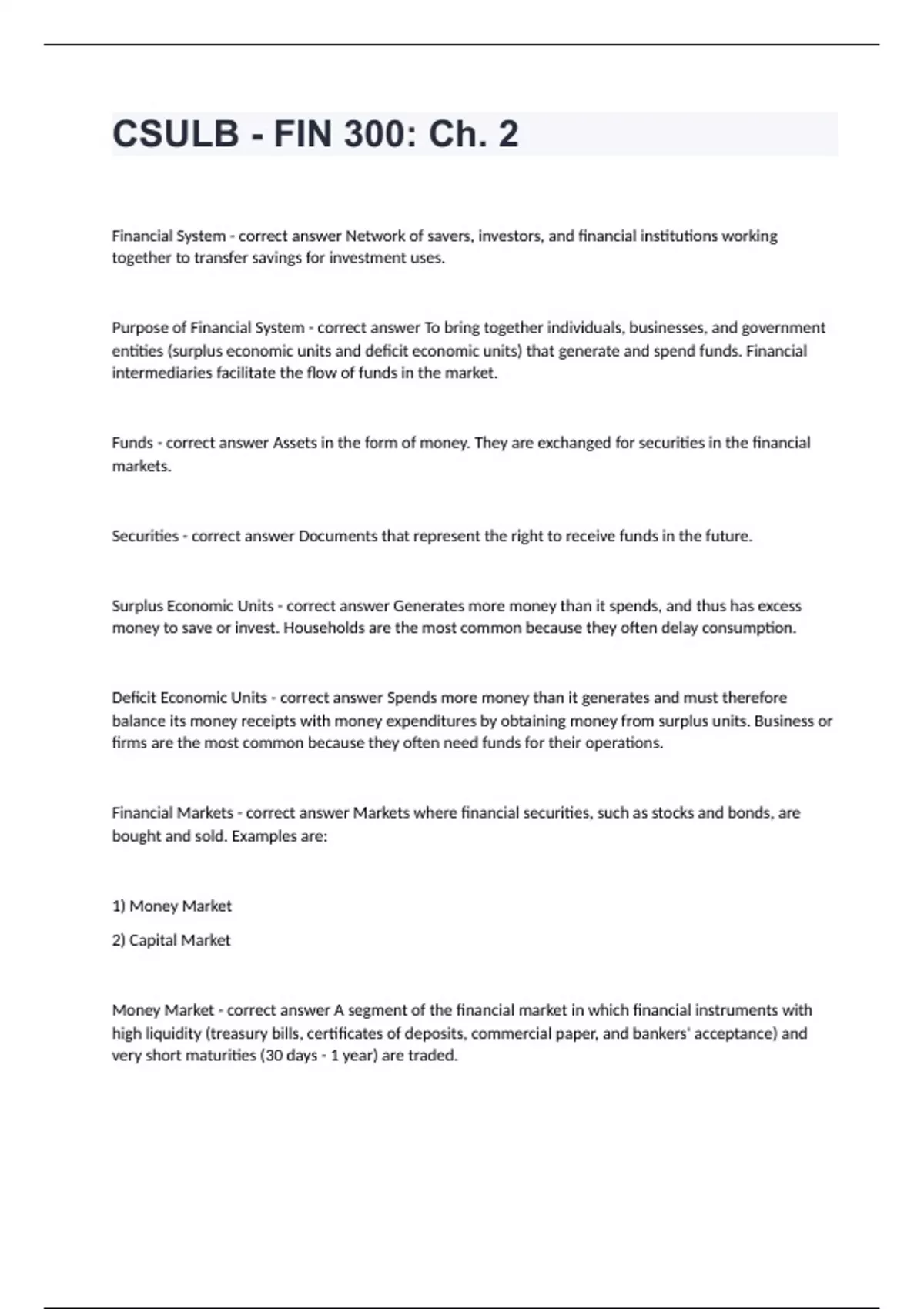 CSULB - FIN 300 Ch. 2 questions and answers already solved 2024