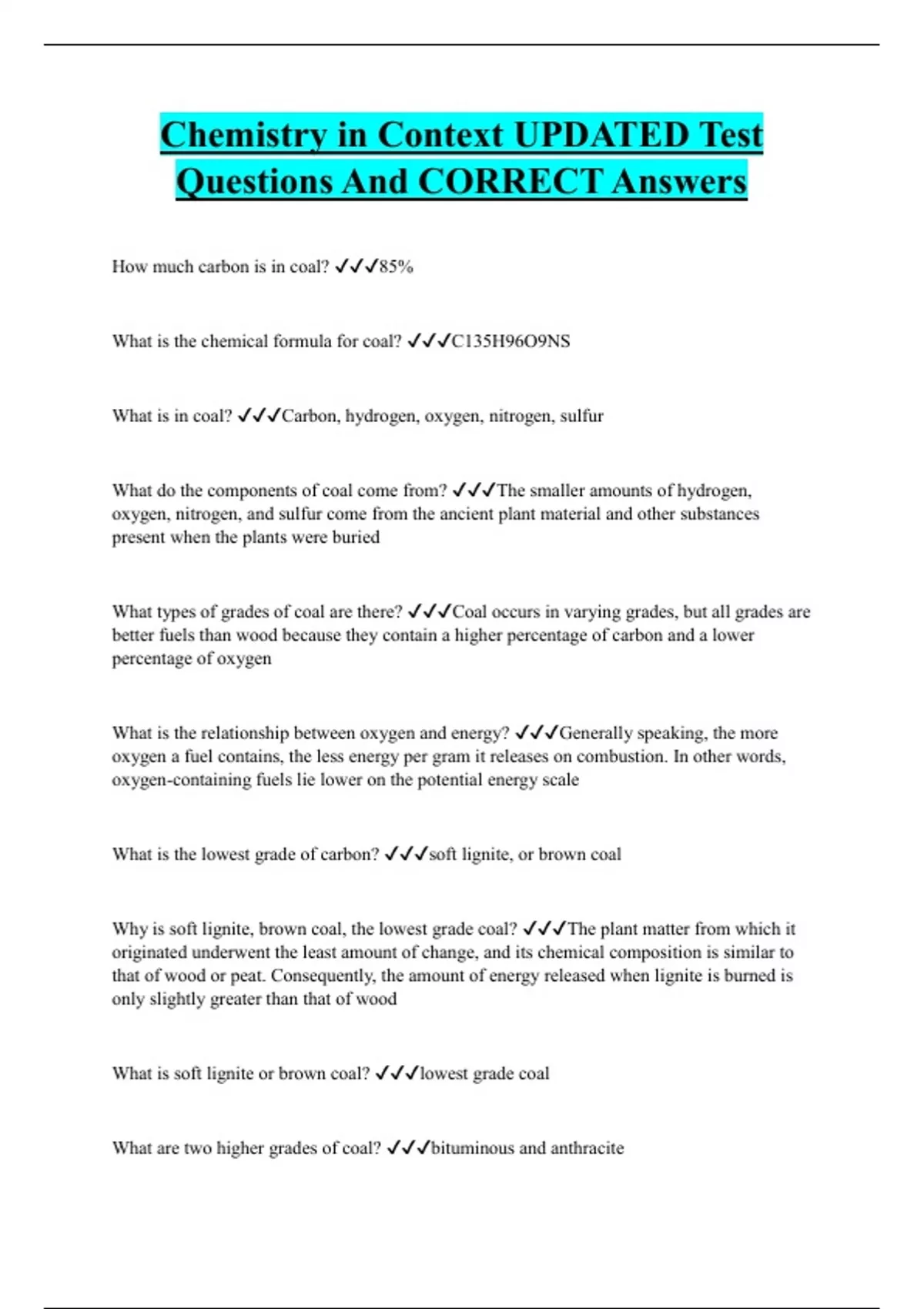 Chemistry in Context UPDATED Test Questions And CORRECT Answers