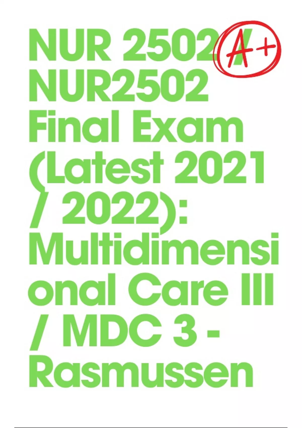 NUR 2502 / NUR2502 Final Exam (Latest 2021 / 2022): Multidimensional Care III / MDC 3 - Rasmussen