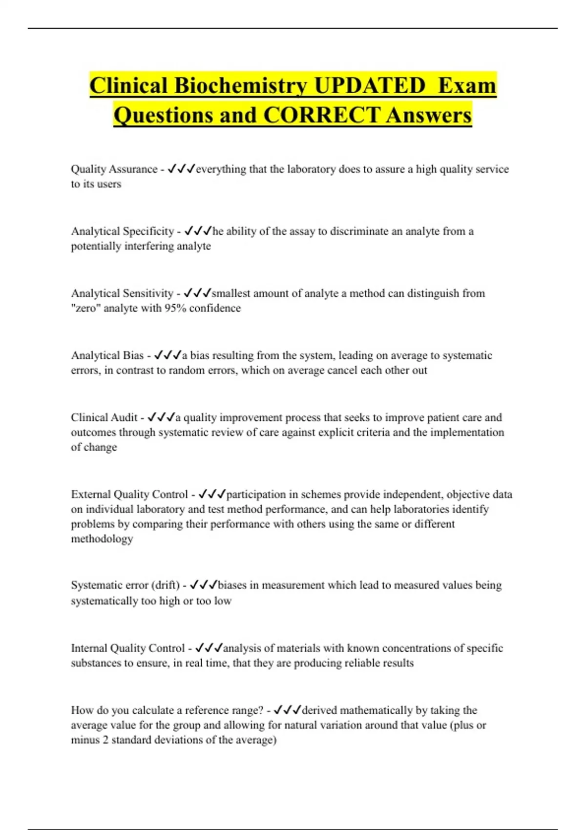 Clinical Biochemistry UPDATED Exam Questions and CORRECT Answers