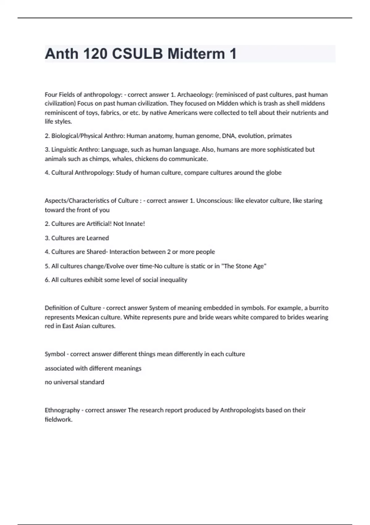 Anth 120 CSULB Midterm 1 questions and answers already solved 2024