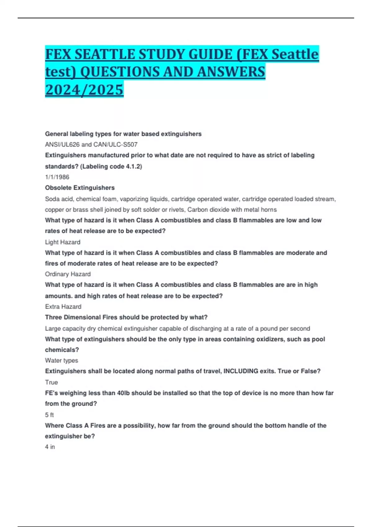 FEX SEATTLE STUDY GUIDE (FEX Seattle test) QUESTIONS AND ANSWERS 2024/2025
