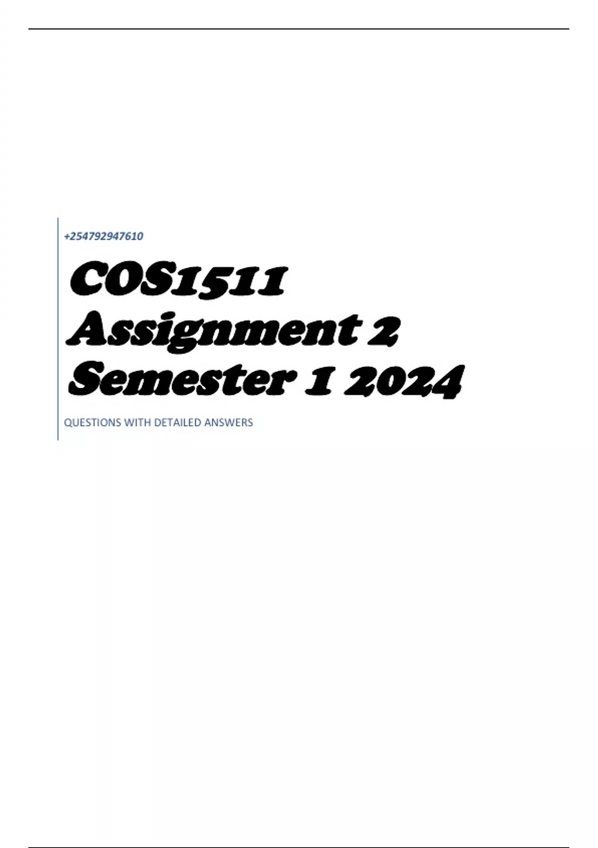 QUESTIONS AND ANSWERS COS1511 Assignment 2 Semester 1 2024