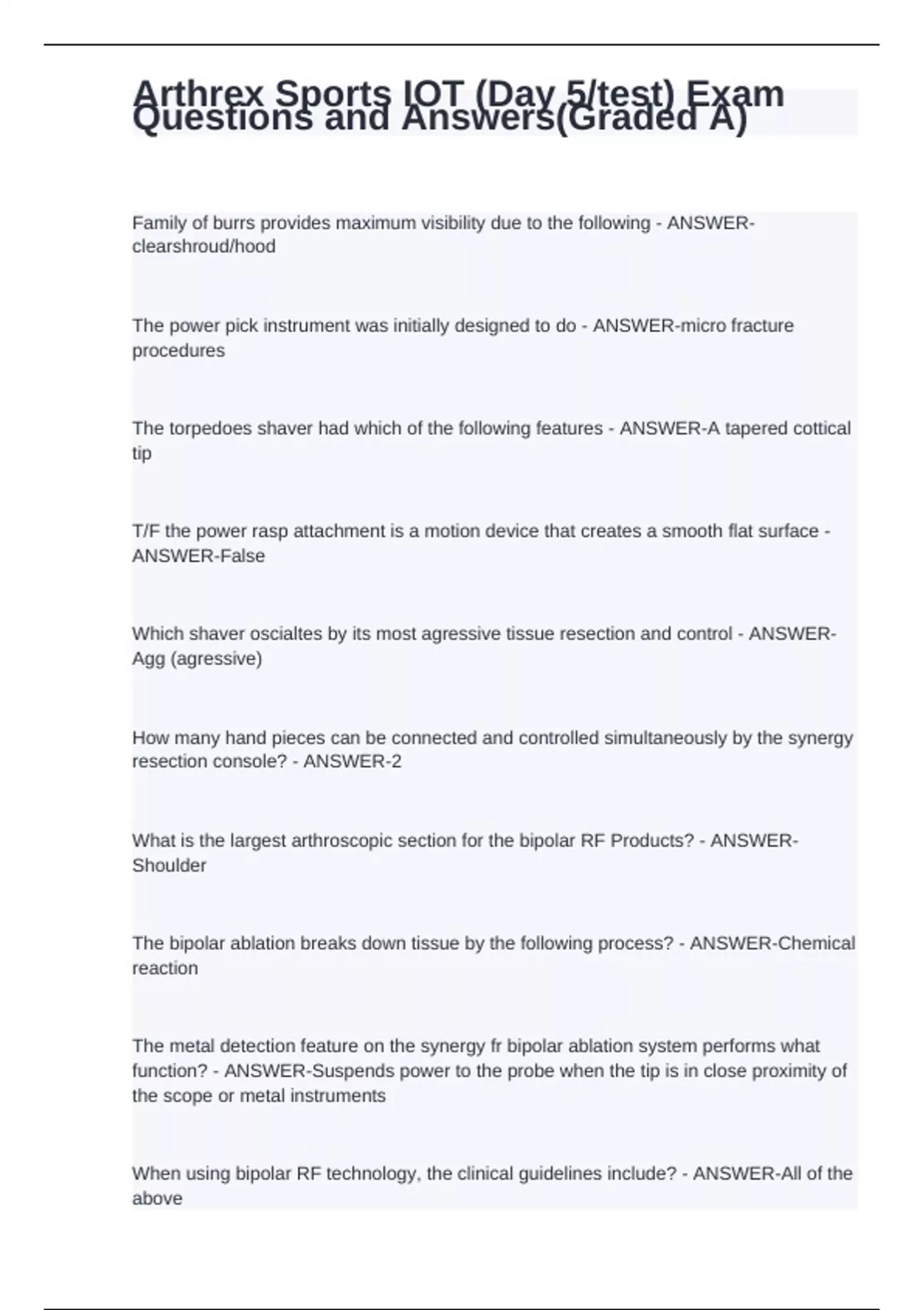 Arthrex Sports IOT (Day 5/test) Exam Questions and Answers(Graded A)