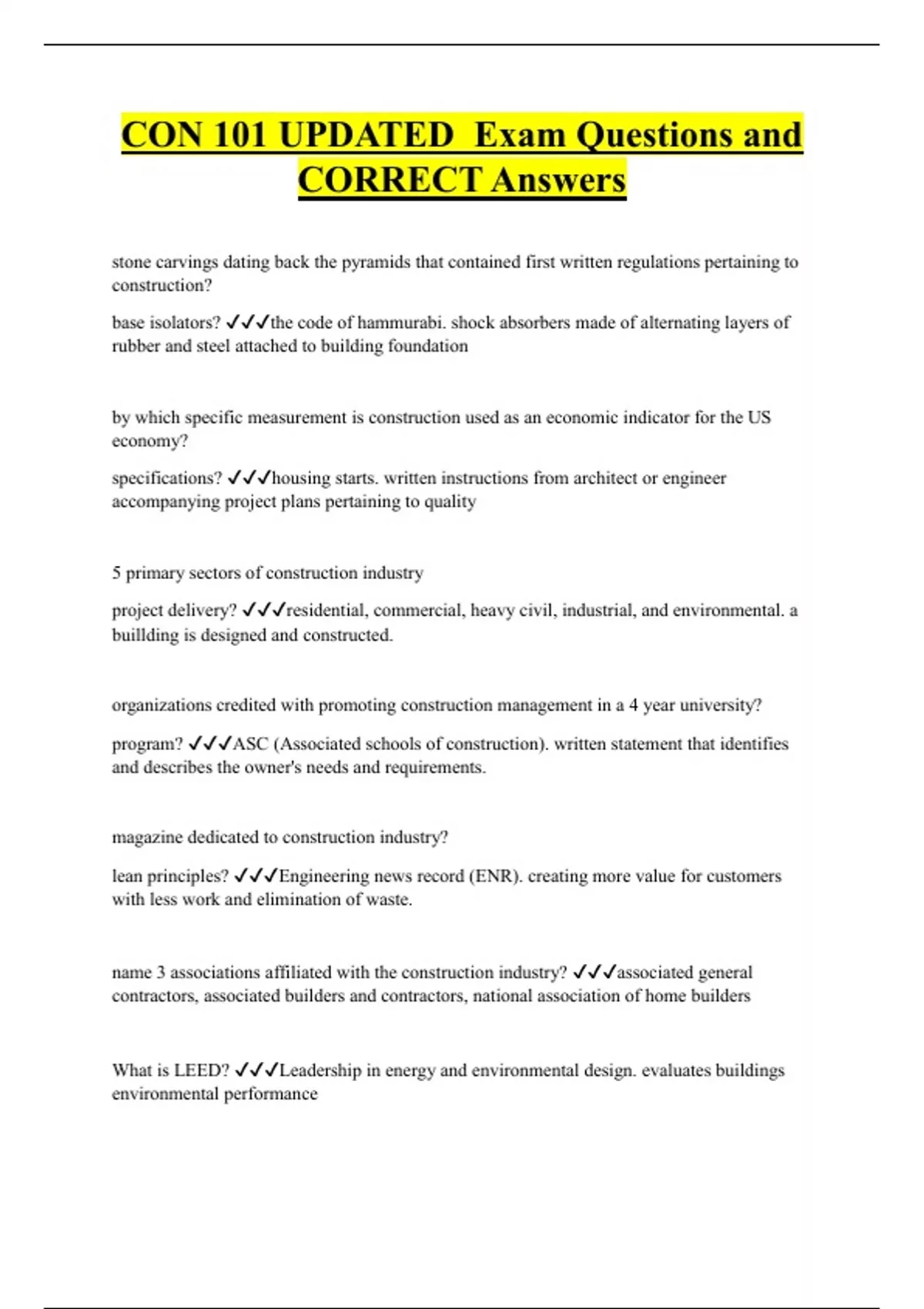 CON 101 UPDATED Exam Questions and CORRECT Answers